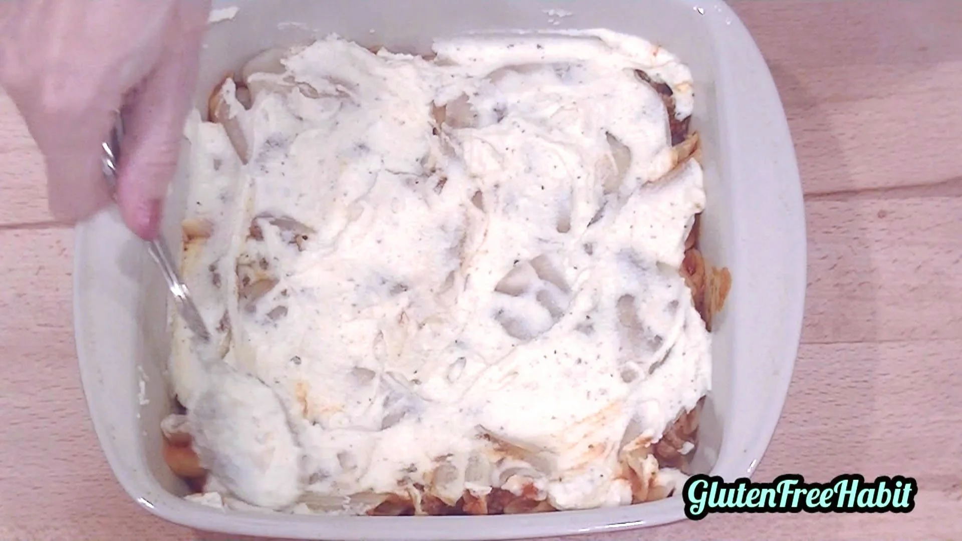 Assemble: Layer the bottom of your dish with 1/2 the pasta/sauce mixture.