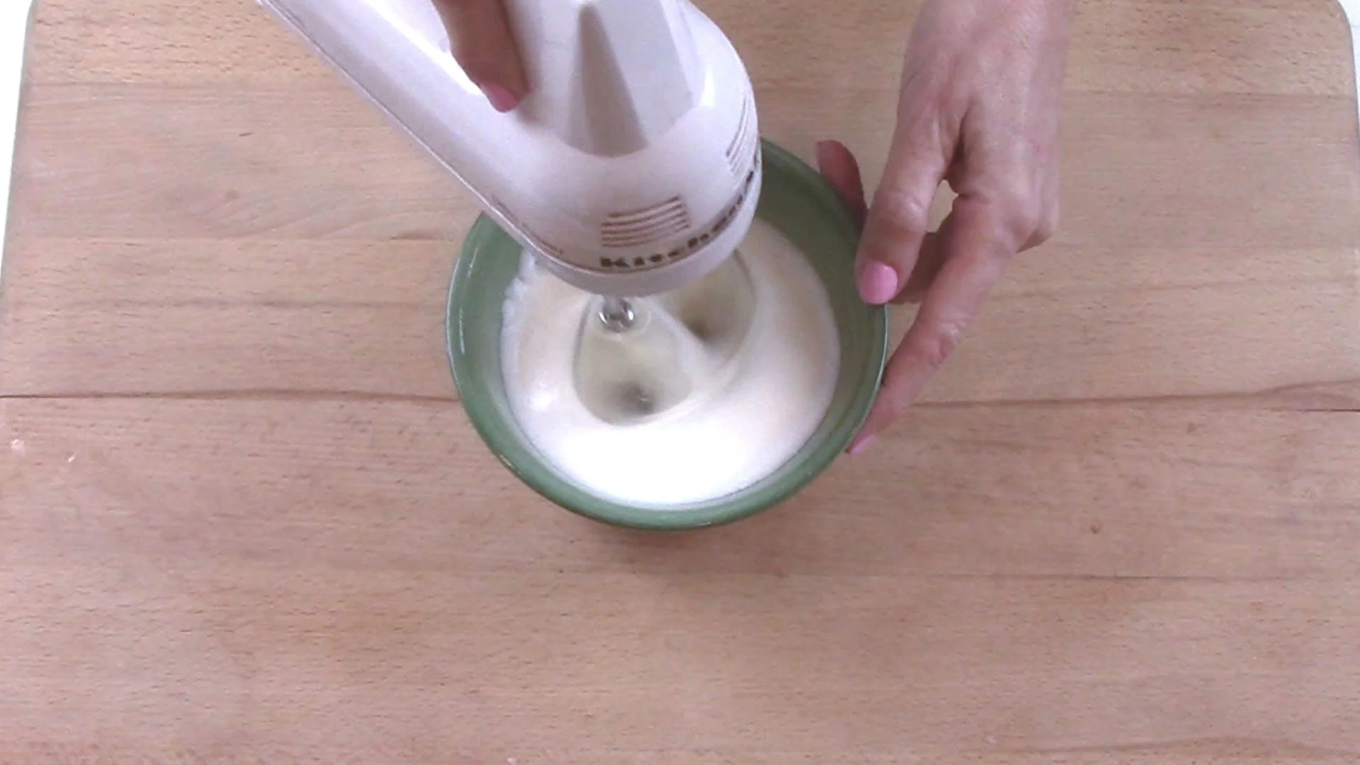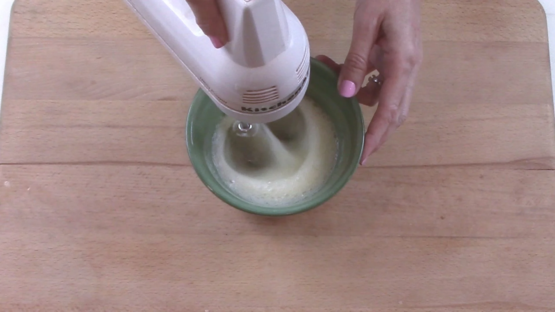 As egg whites start to appear foamy, increase speed.