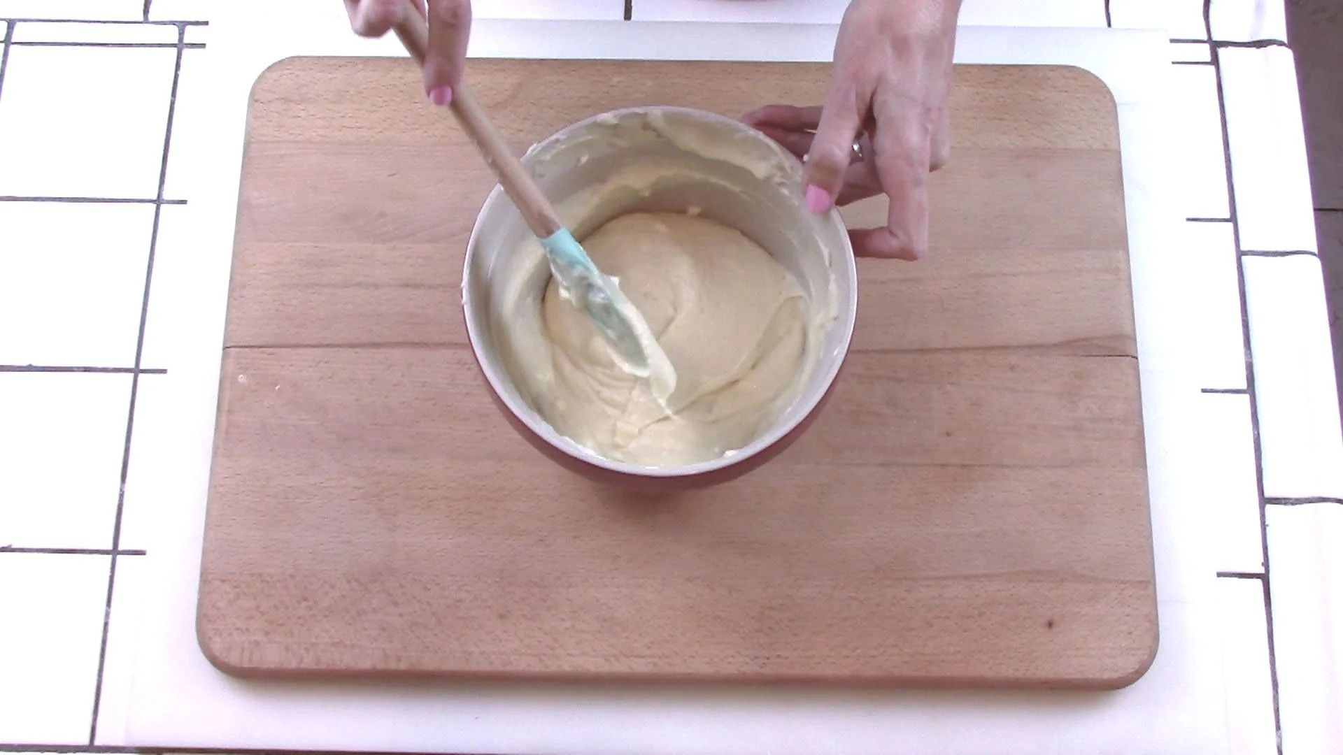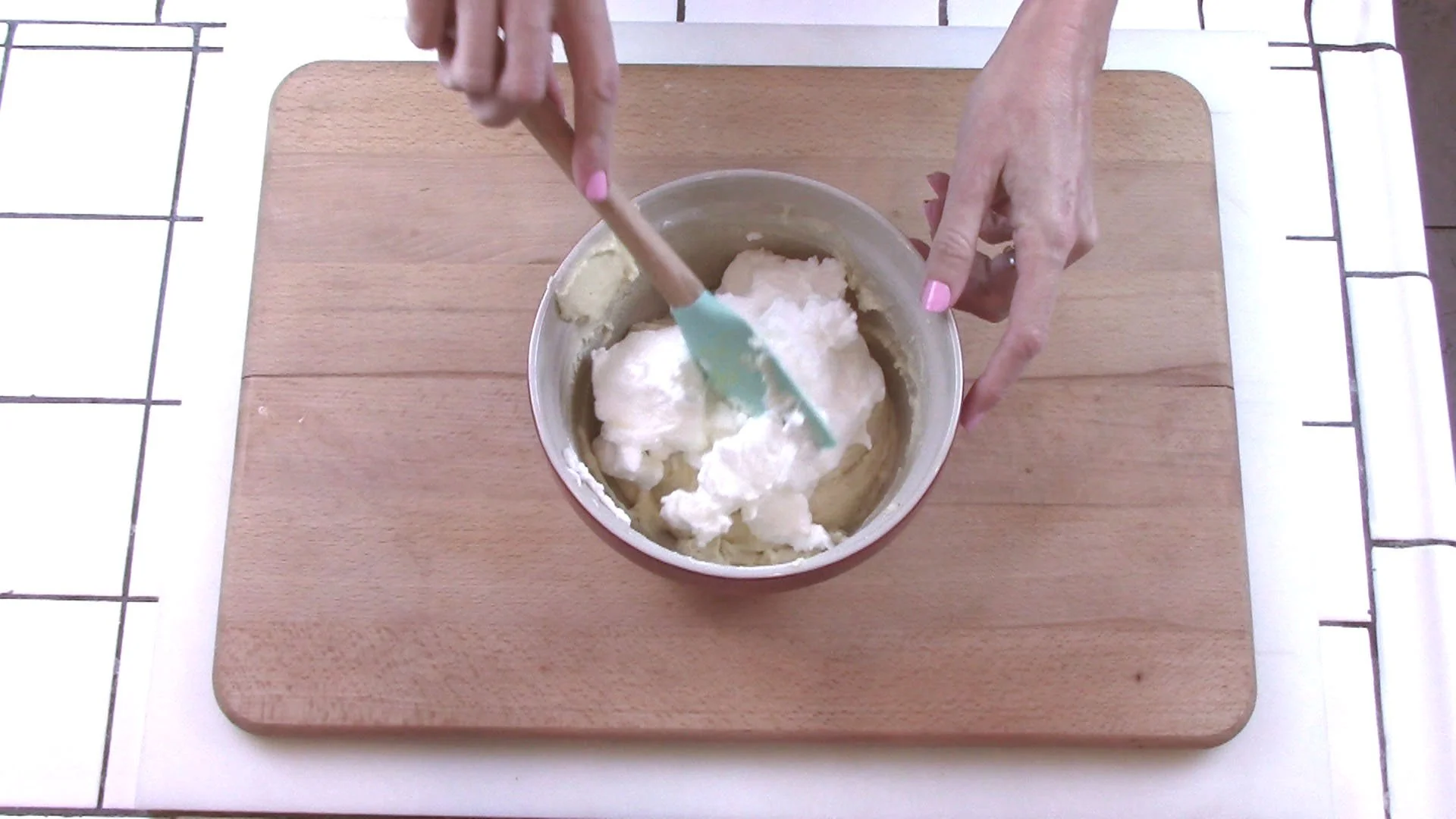 Gently fold egg whites into batter with rubber spatula