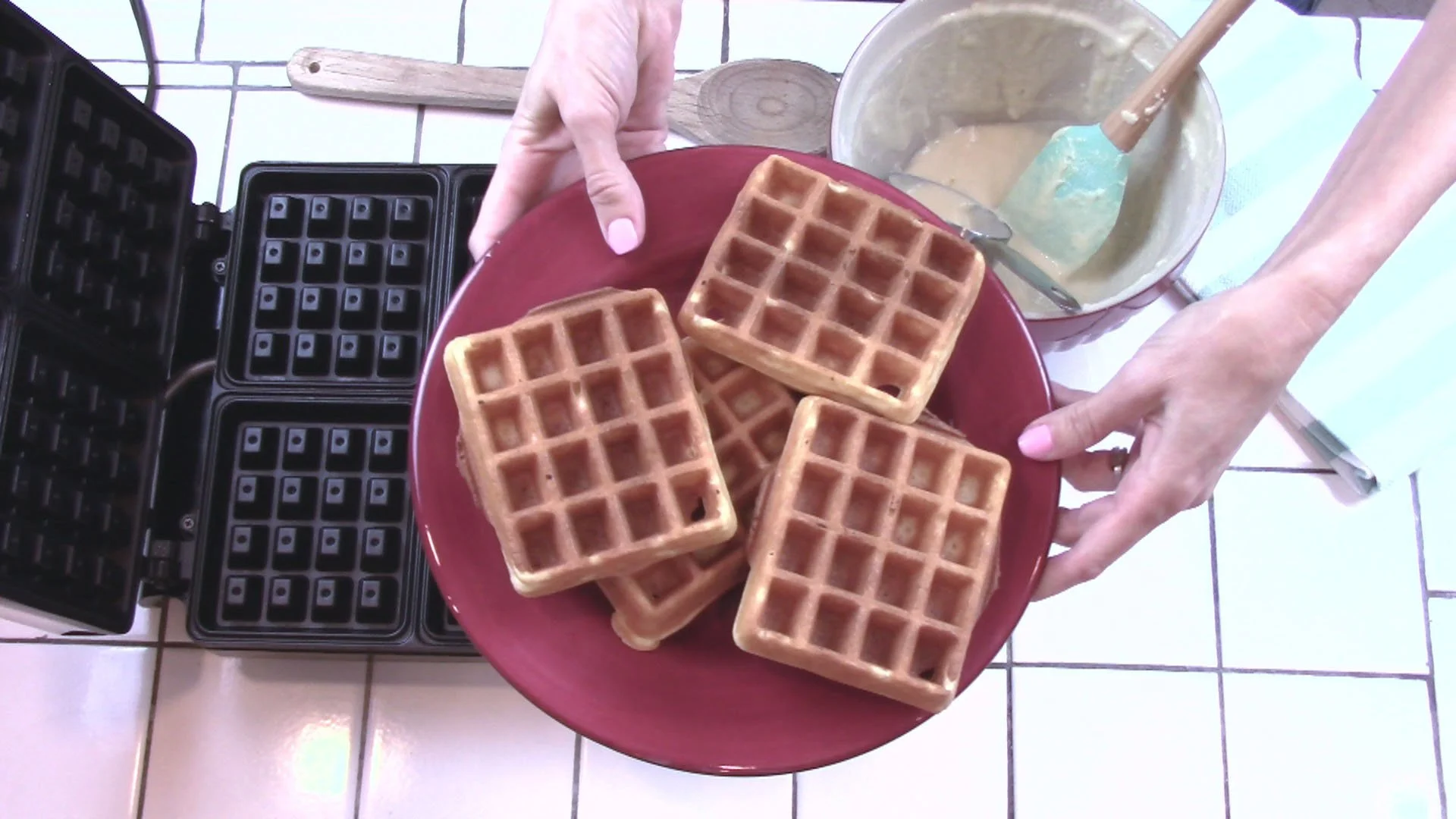 Makes: 5 waffles (1/2 cup each)