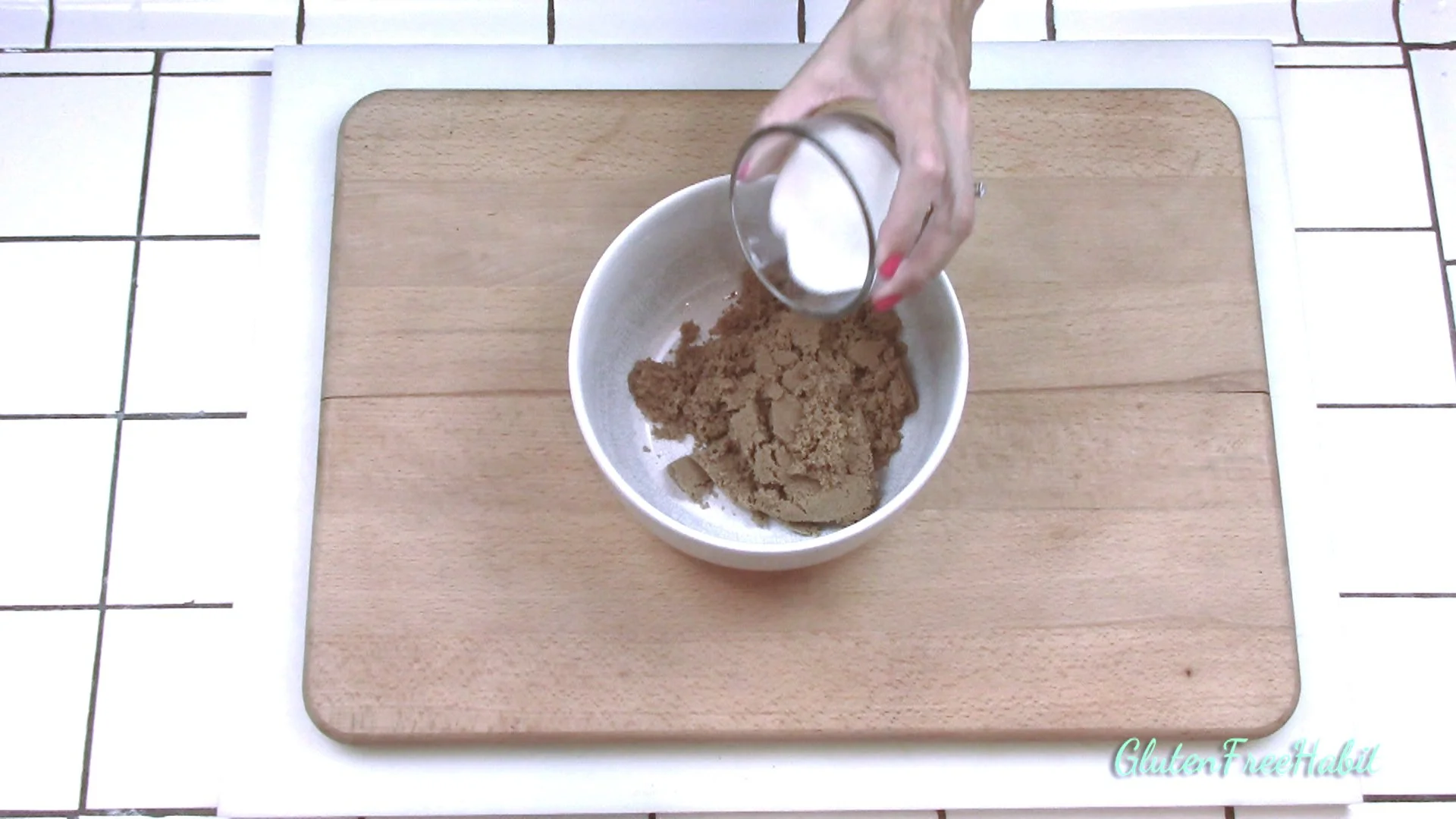 Into another medium-sized mixing bowl, add your brown sugar and granulated sugar. Break up any lumps of brown sugar.