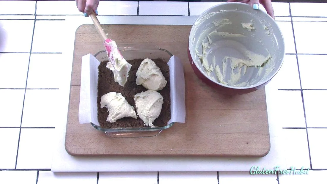 Add the remaining ½ of the batter. Spread flat with a small knife.