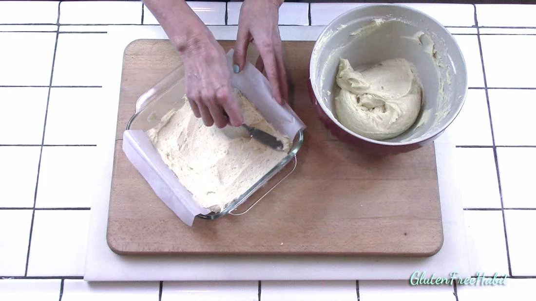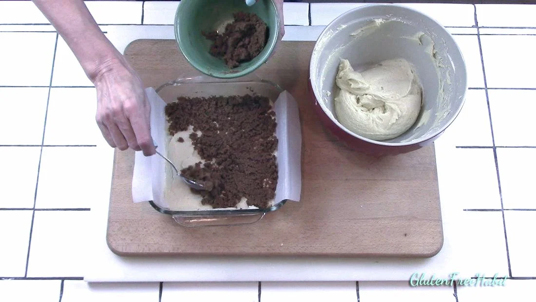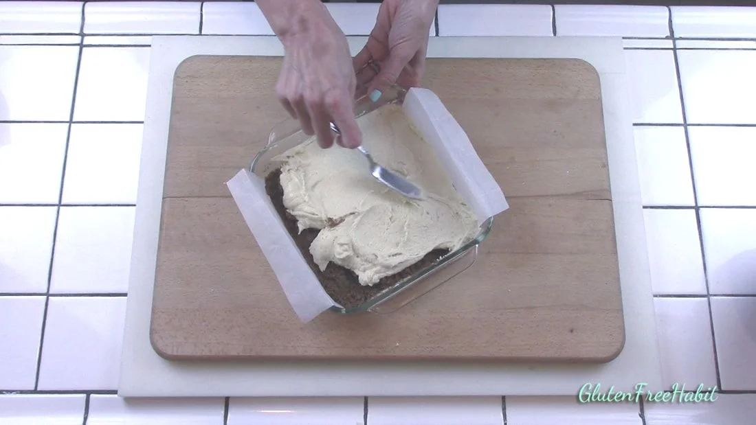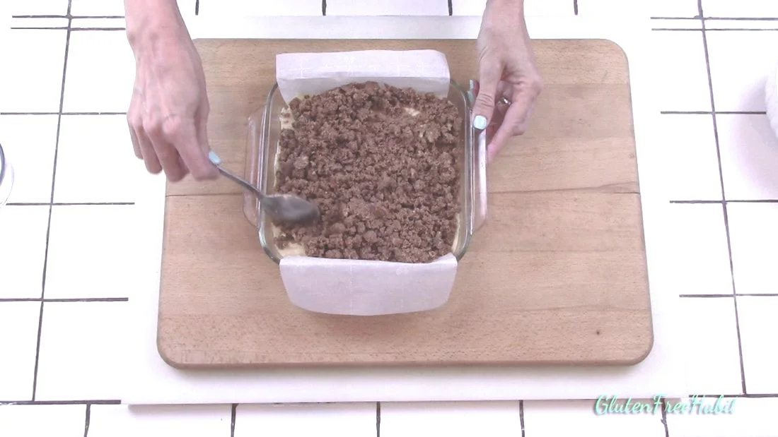 Spread the topping evenly over the batter. Press the topping in very slightly.