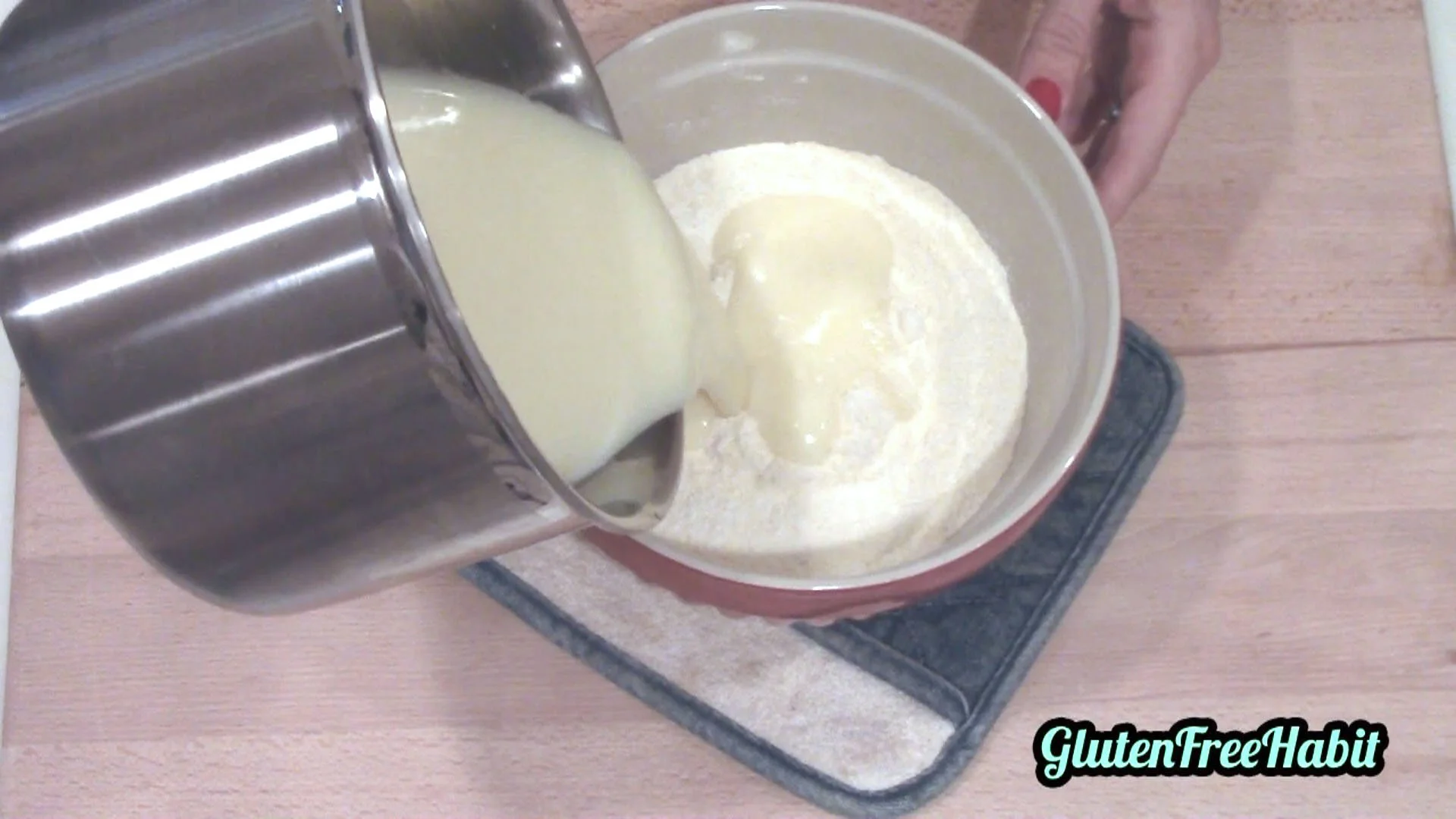 Getting ready: Prepare gluten-free flour mix if needed (see below). Preheat oven to 375 ̊. Spray 8x8 baking dish with cooking spray or put paper liners into cupcake tray.