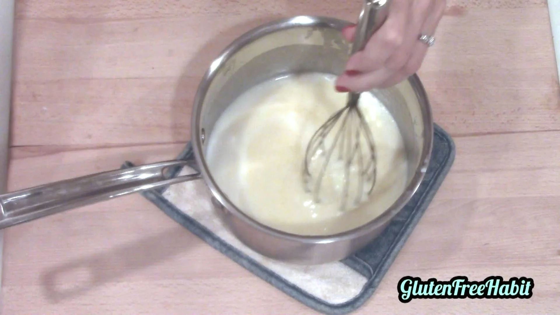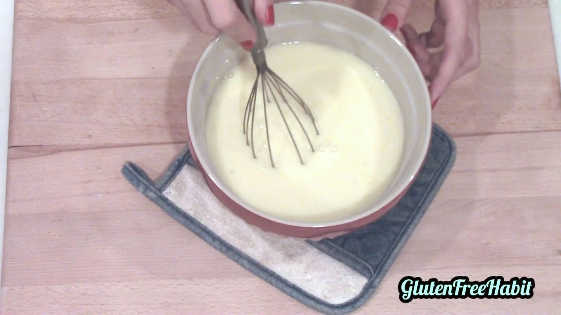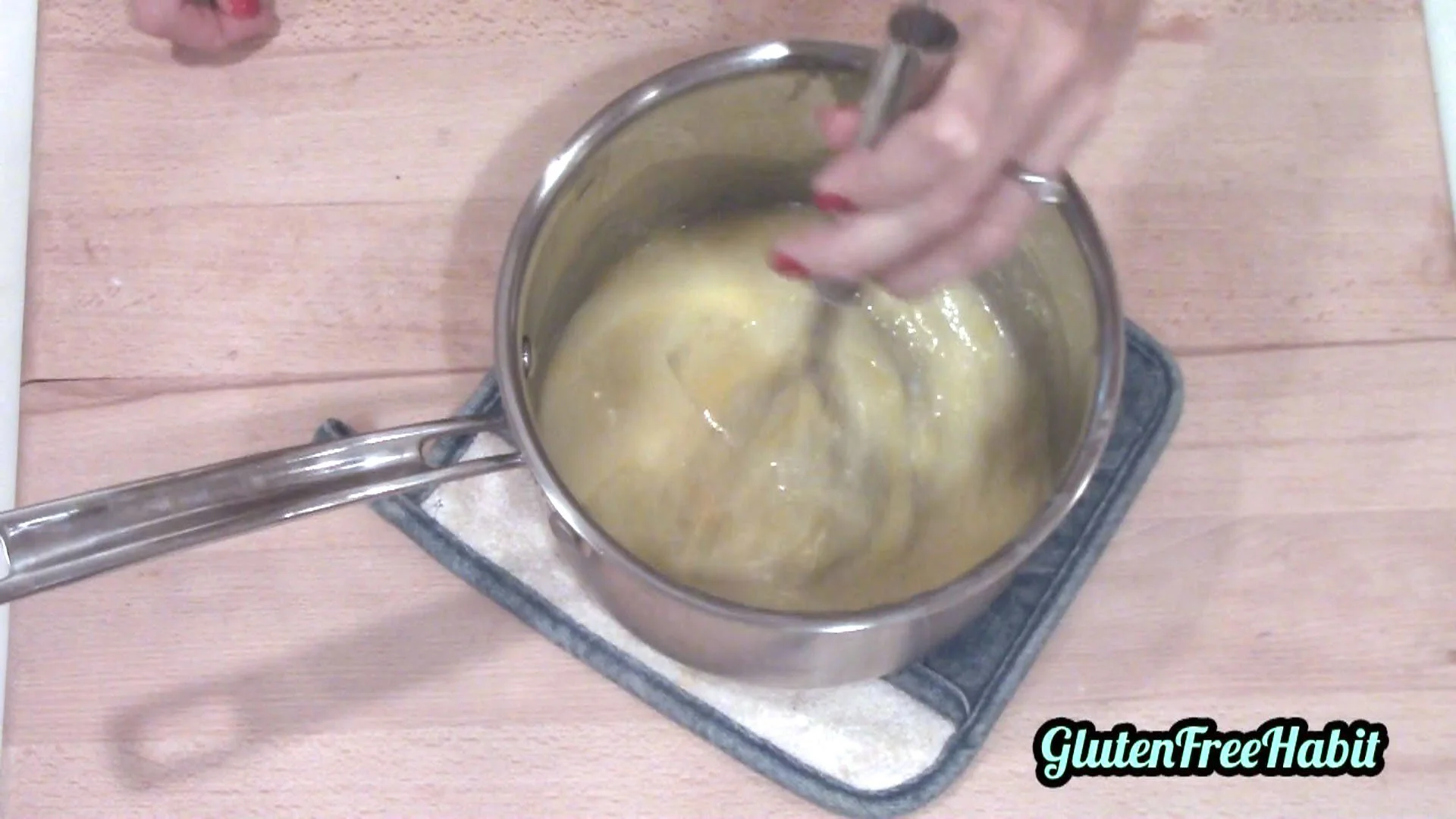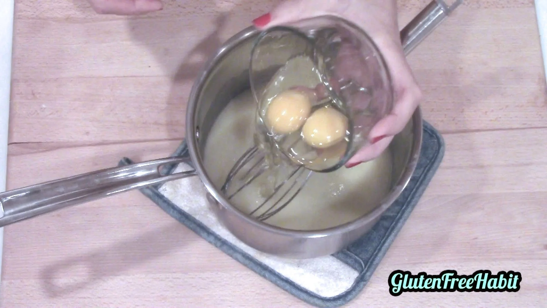 Whisk and set aside to cool for 10 minutes or so. (It should be cool enough that the eggs won’t cook when you add them in!)