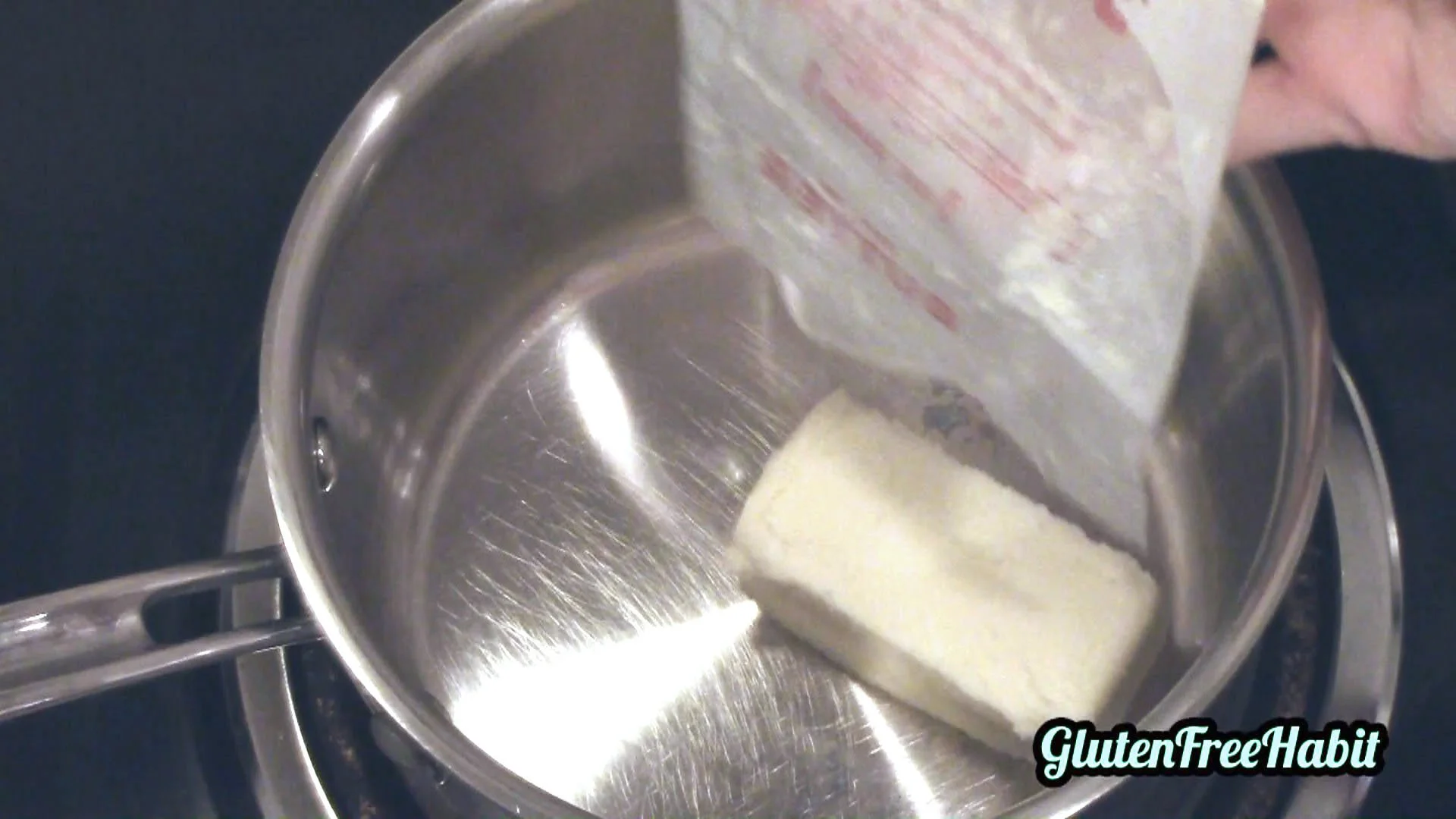 In a medium–sized saucepan melt butter on low heat. Remove from heat when melted.