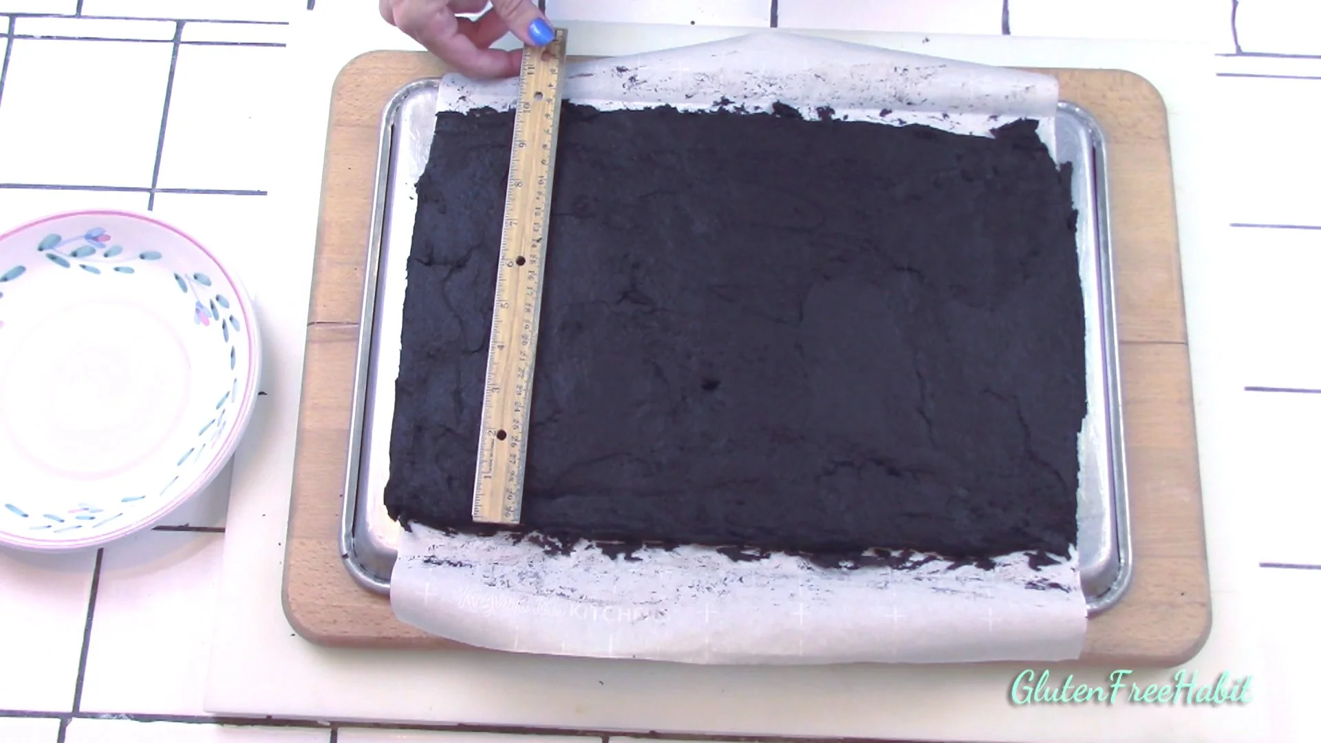 Place dough onto baking sheet and spread with off-set spatula to form an 8x16 rectangle (actually make it a tiny bit larger on each side to allow for edges to be trimmed neatly).