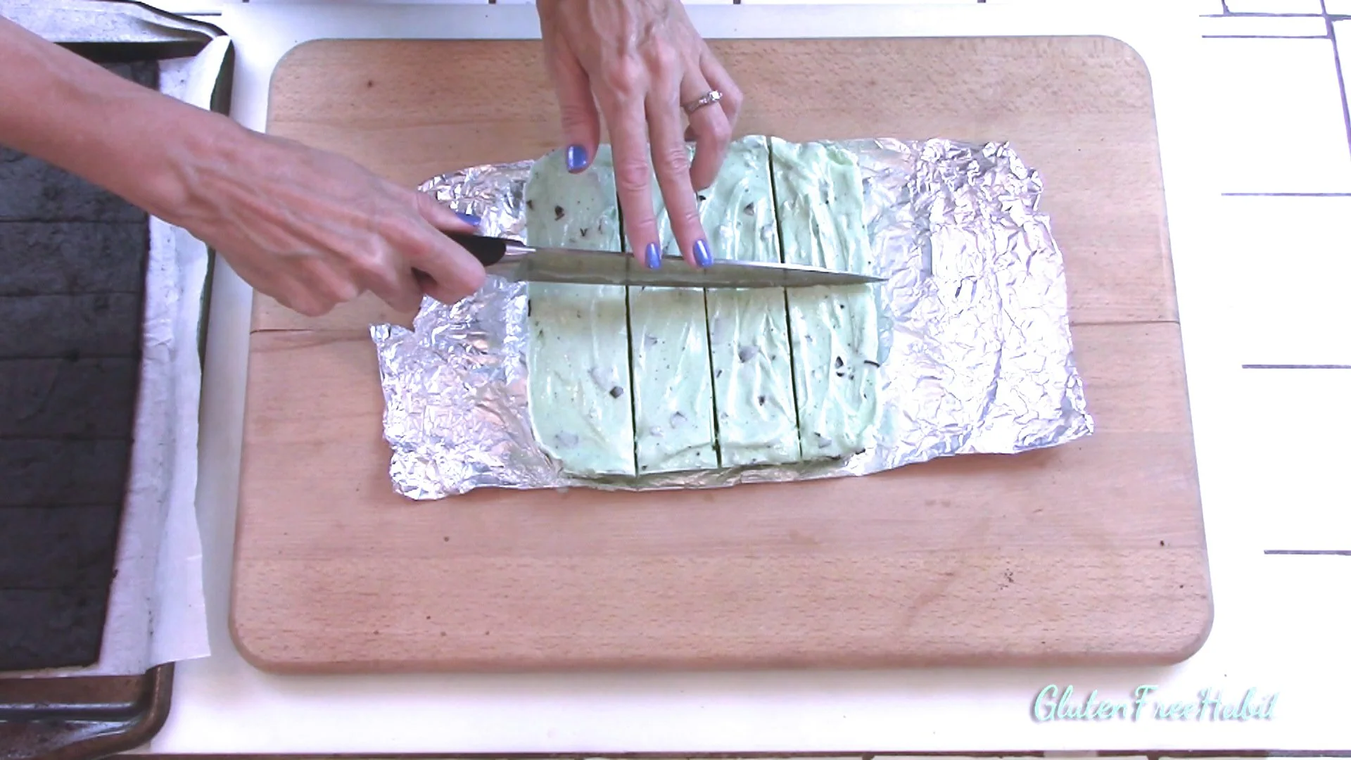 Slice into eight 2”x4” pieces. Work very quickly to minimize melting.