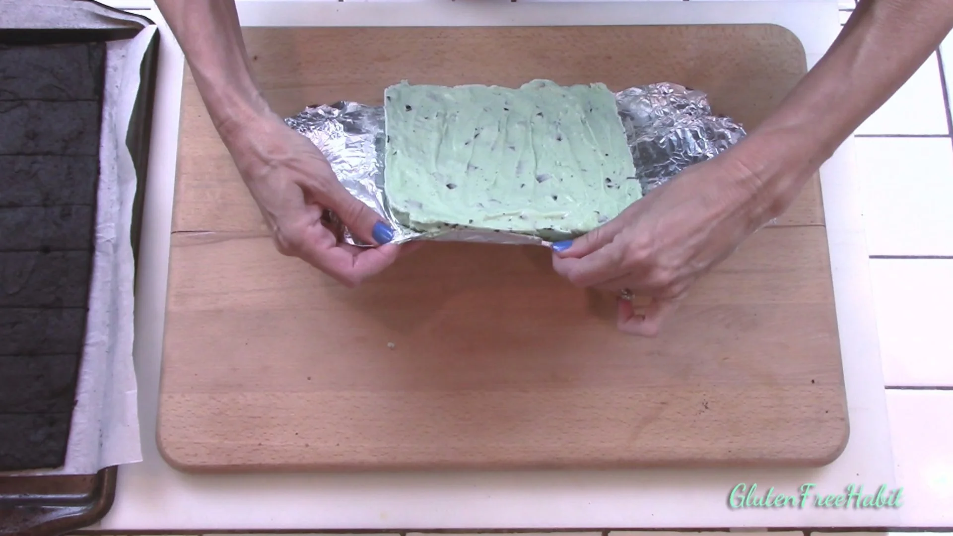 Allow to cool on the counter for 15 minutes or so. Then, place cake (still on the cutting board) into the freezer for another 20 minutes.