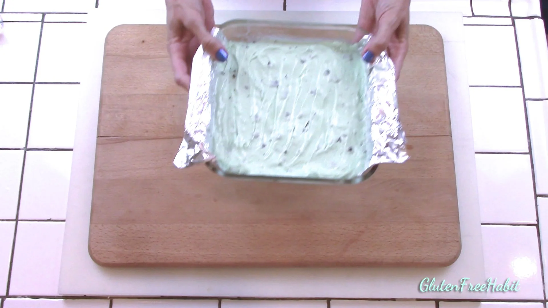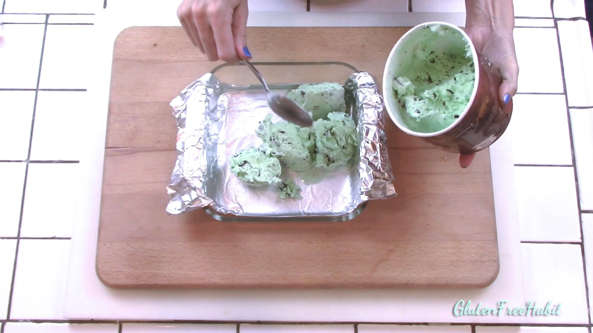 STEP ONE NEEDS TO BE DONE AT LEAST A COUPLE HOURS IN ADVANCE OF ALL OTHER STEPS (or night before): Line an 8x8 pan with tinfoil and spray it lightly with non-stick spray. Allow a little tinfoil to hang over the edge. This will help you lift out the ice cream when it’s solid.
