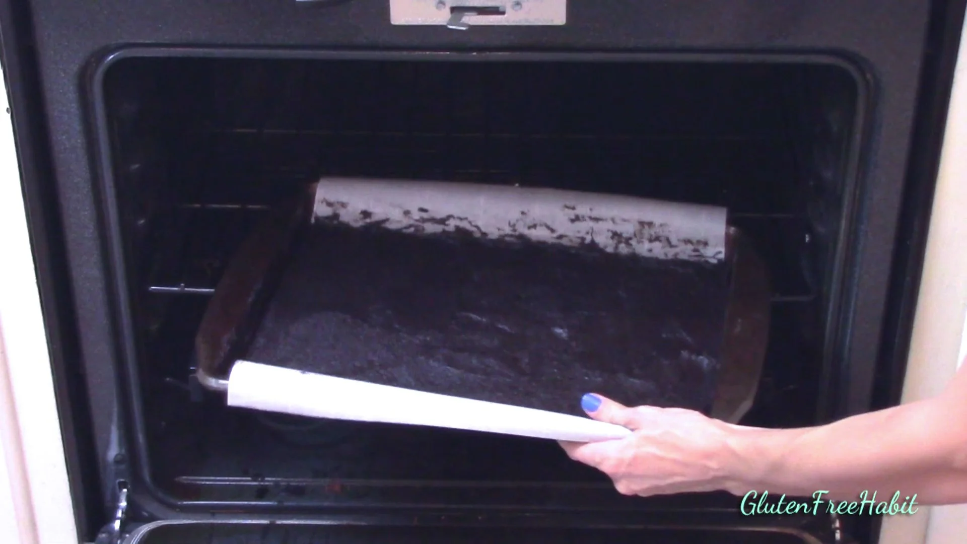 After baking, do not leave on hot pan. Carefully lift parchment off and place onto a cutting board or back of large baking sheet. Bend cake as little as possible to avoid cracking.