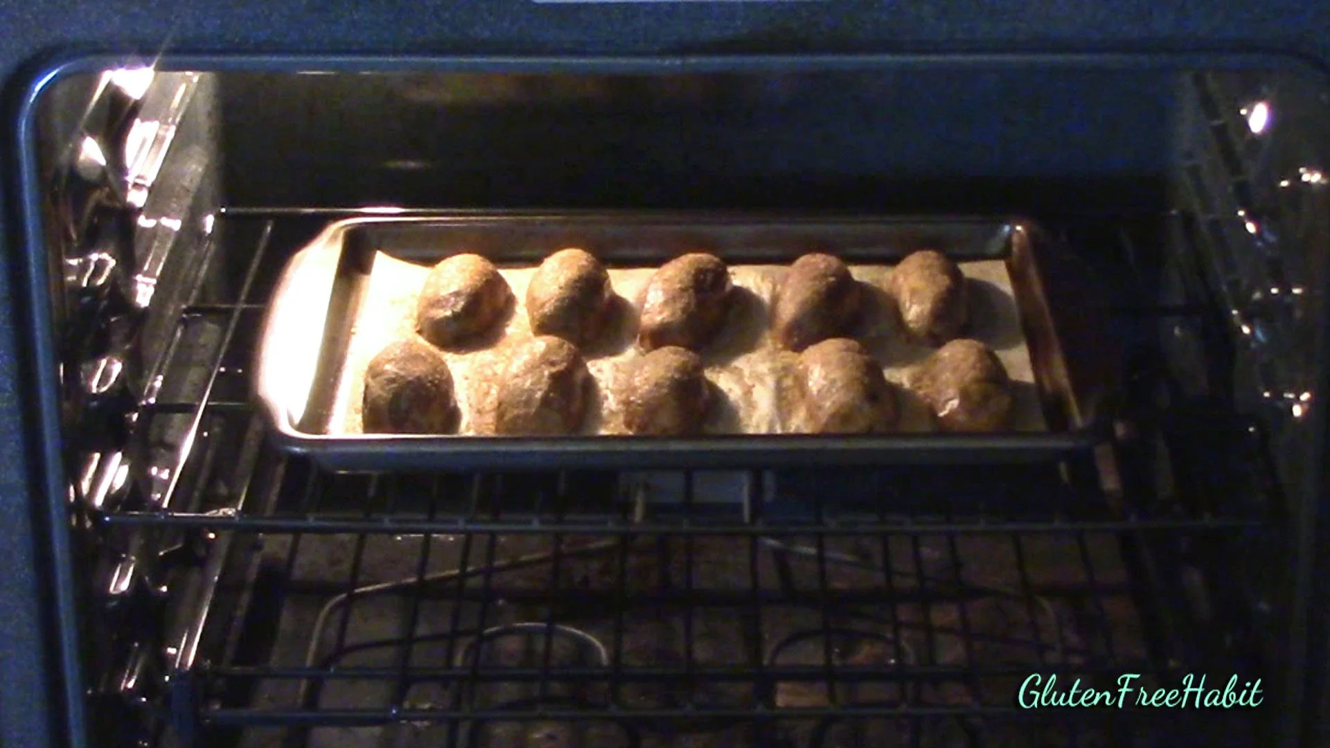 Bake about 3 minutes, then flip all potatoes,