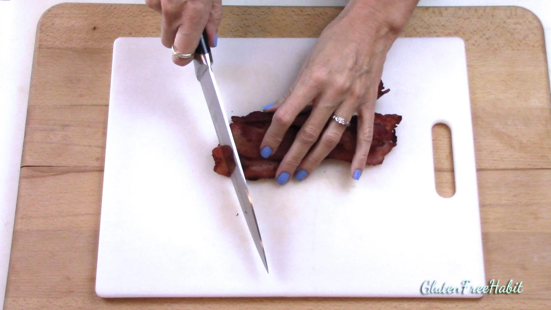 Finely chop the bacon.