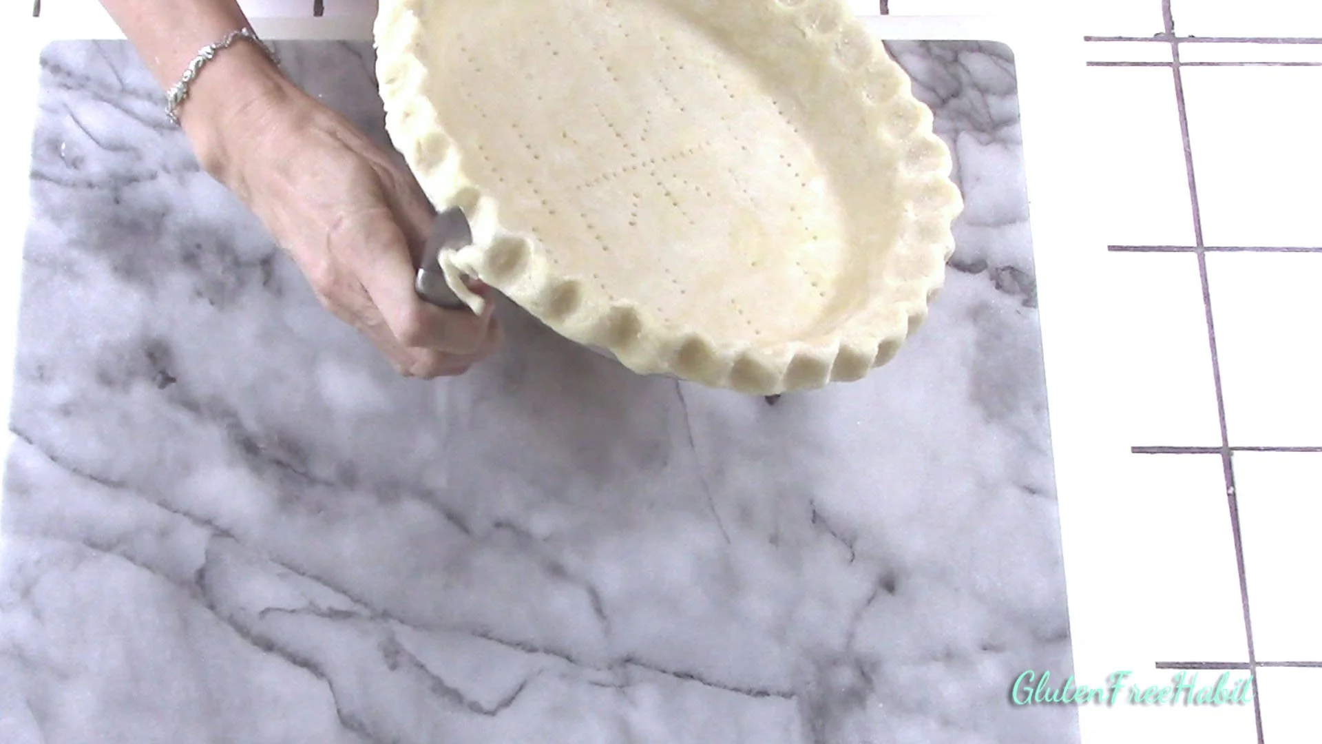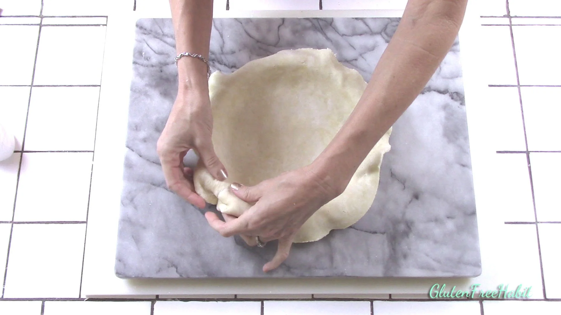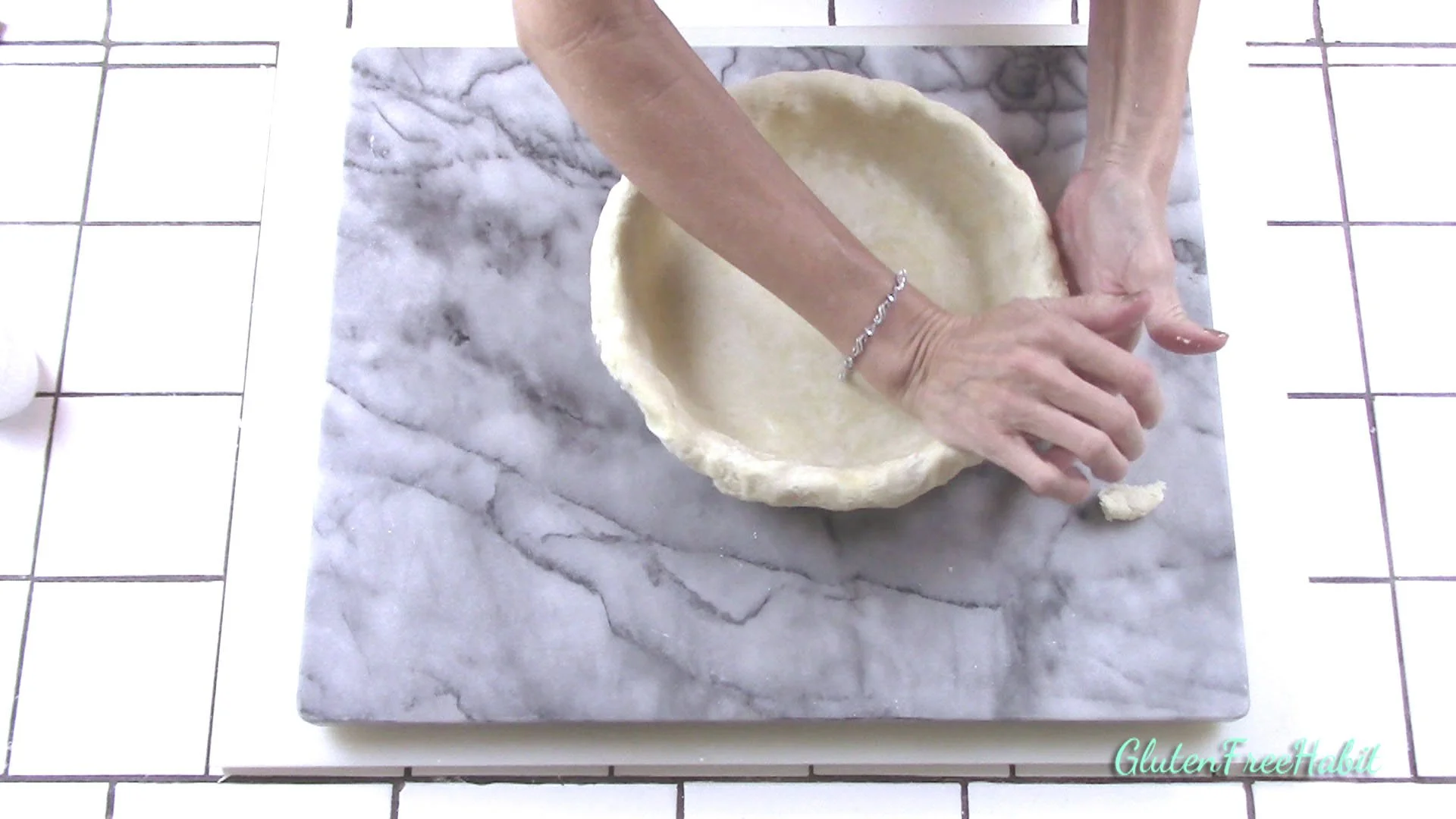 Fold excess dough under, all the way around the pie plate, gently pressing dough together.
