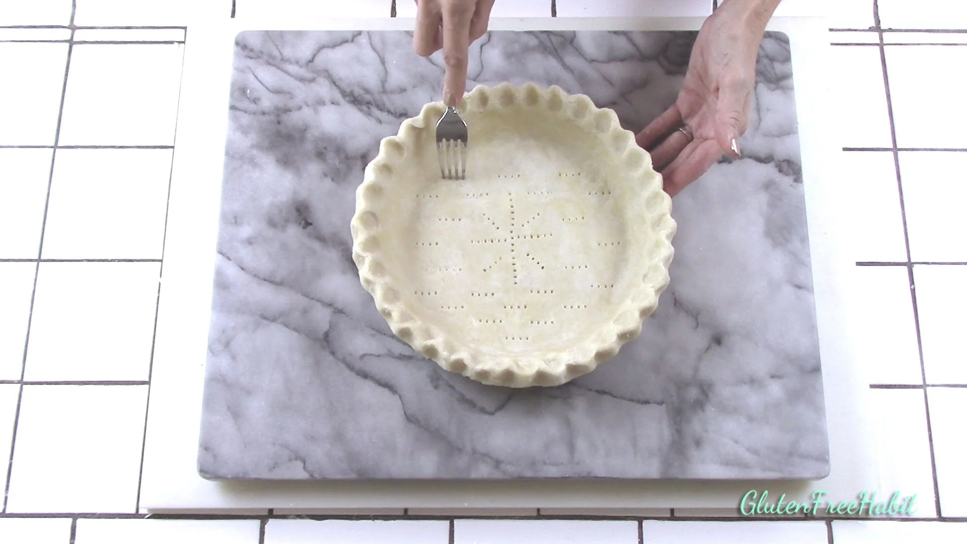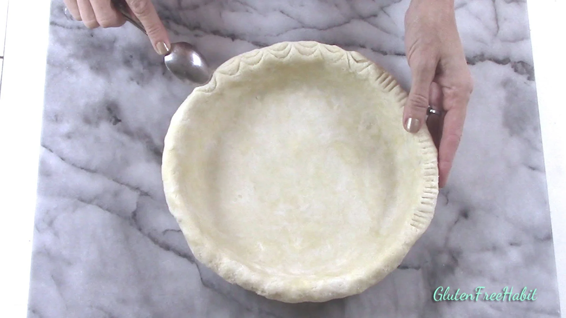 Using the tines of a fork, poke holes liberally on the bottom of the pie dough.