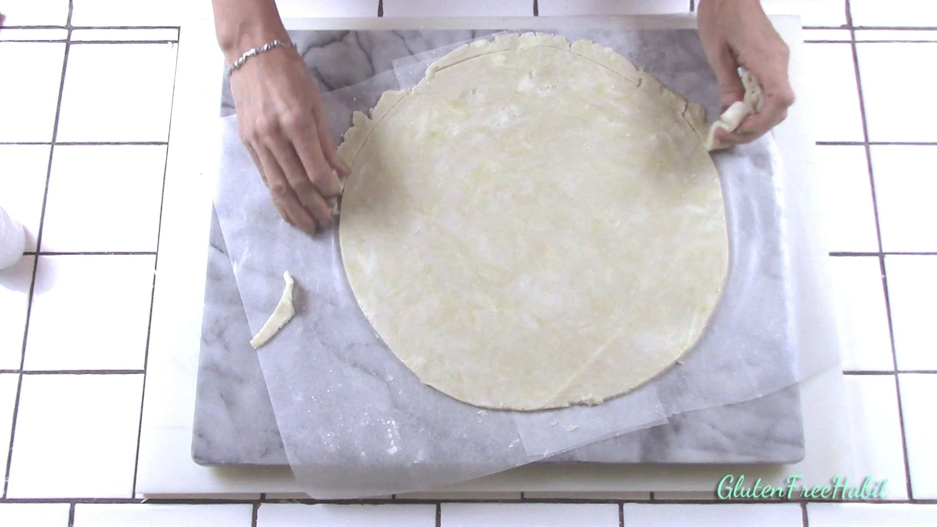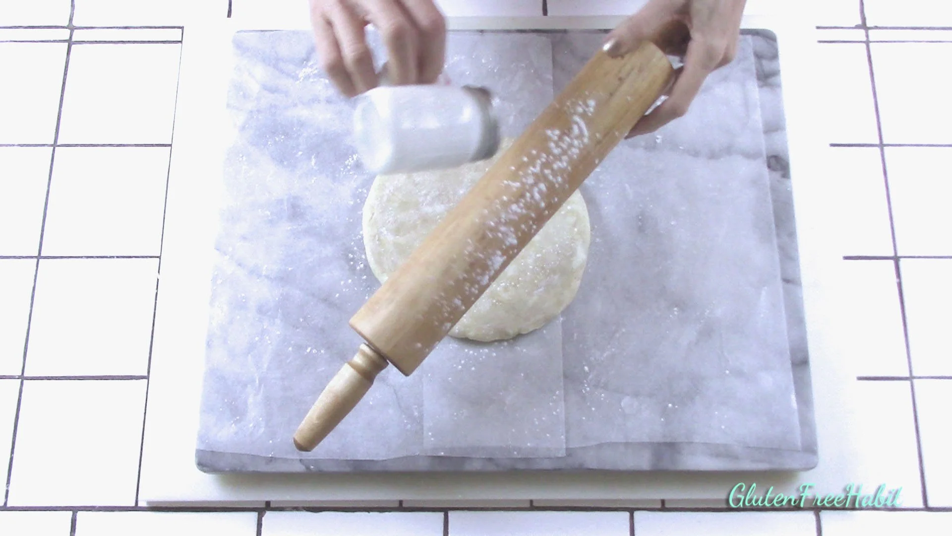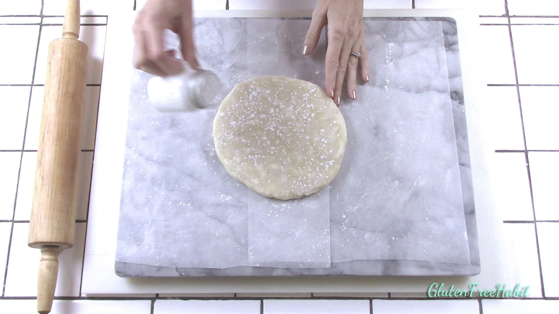 Lightly dust top of dough and rolling pin with gluten free flour.