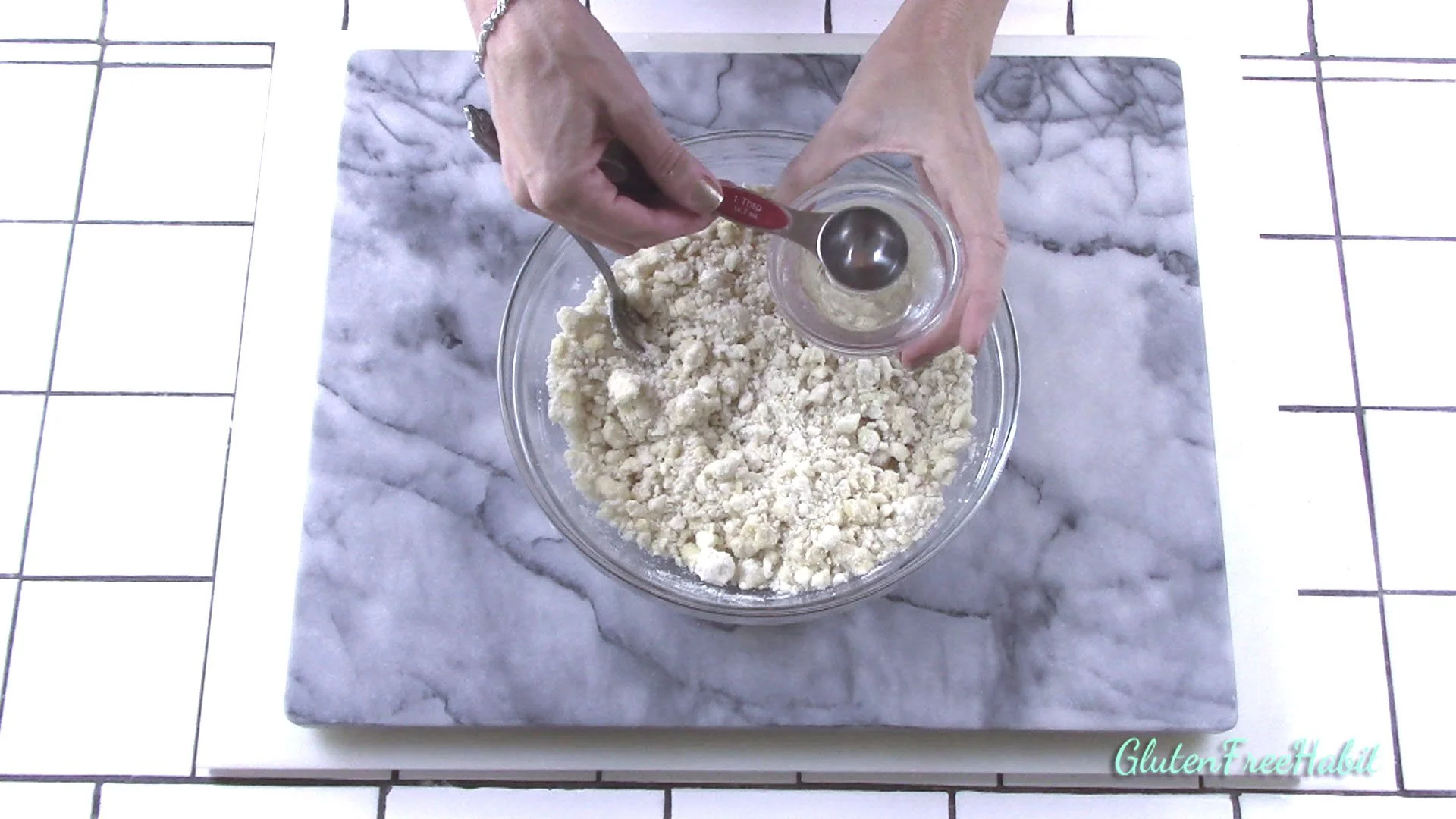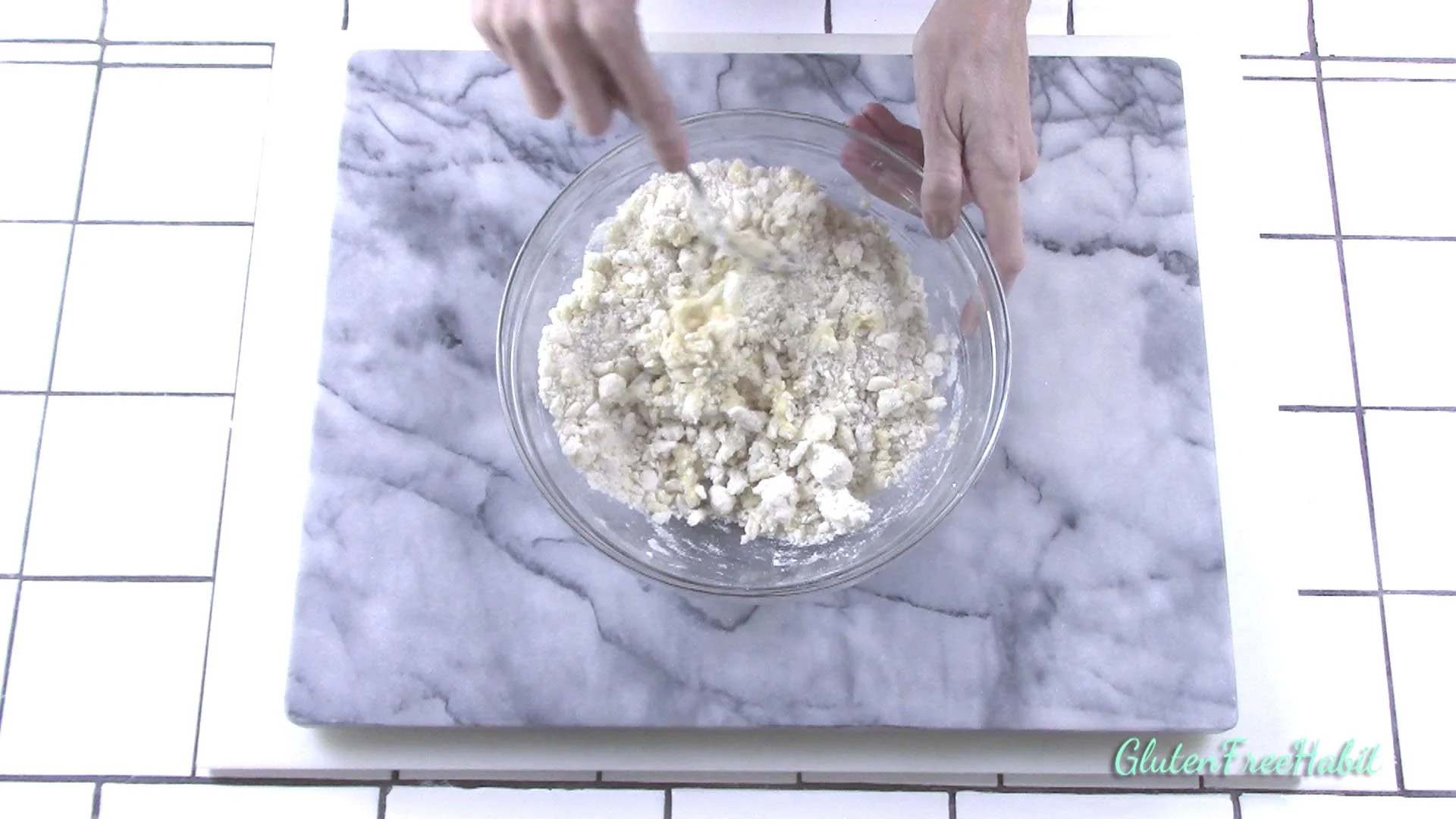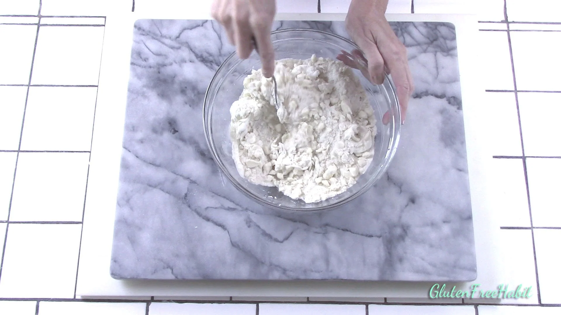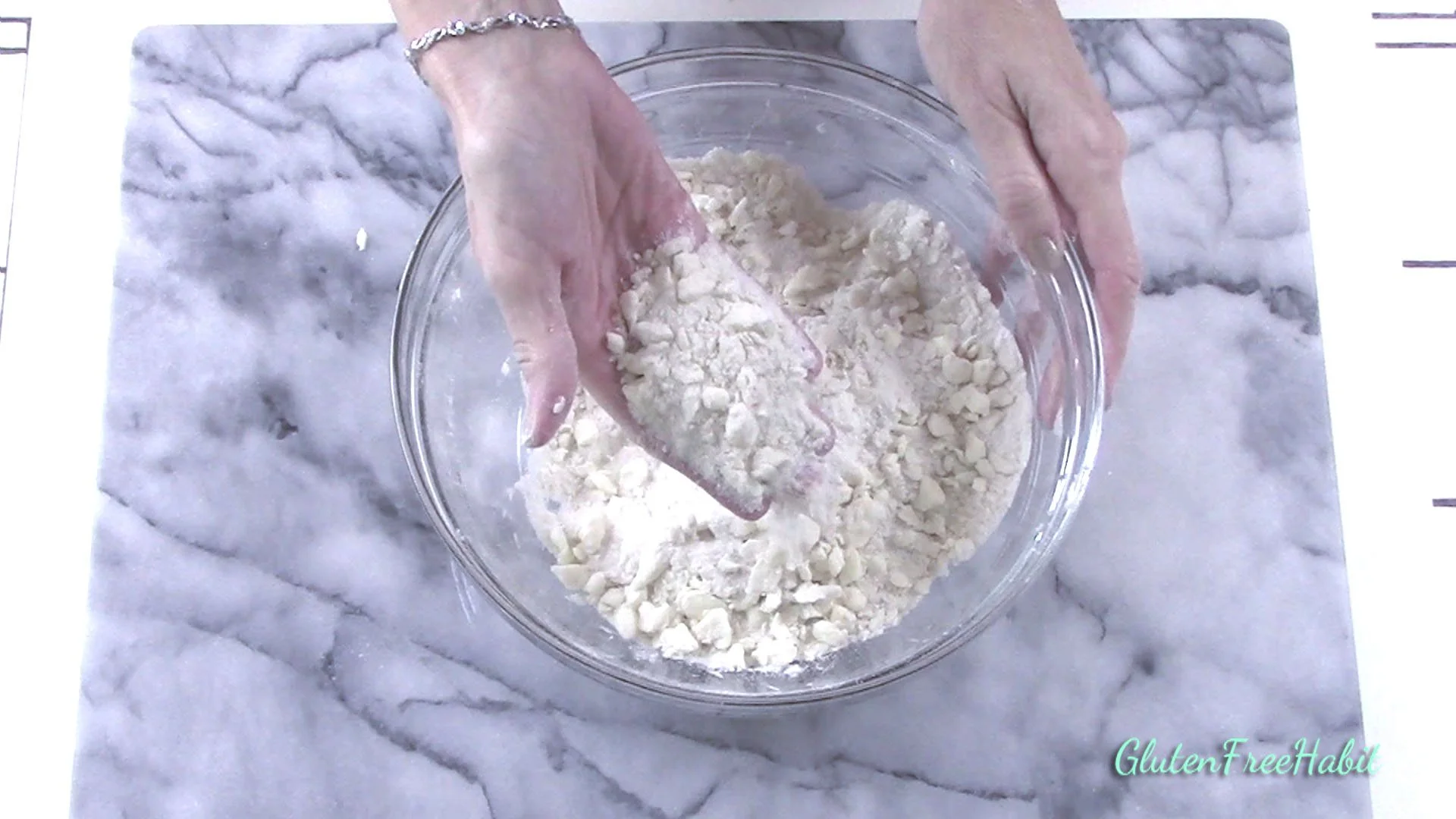 Continue adding water, one tablespoon at a time, just until all dry crumbs are very lightly moistened. I find that 4 tablespoons is perfect for my dough. Dough will be somewhat moister than typical “gluten” dough, but should never be so moist that it gets sticky.