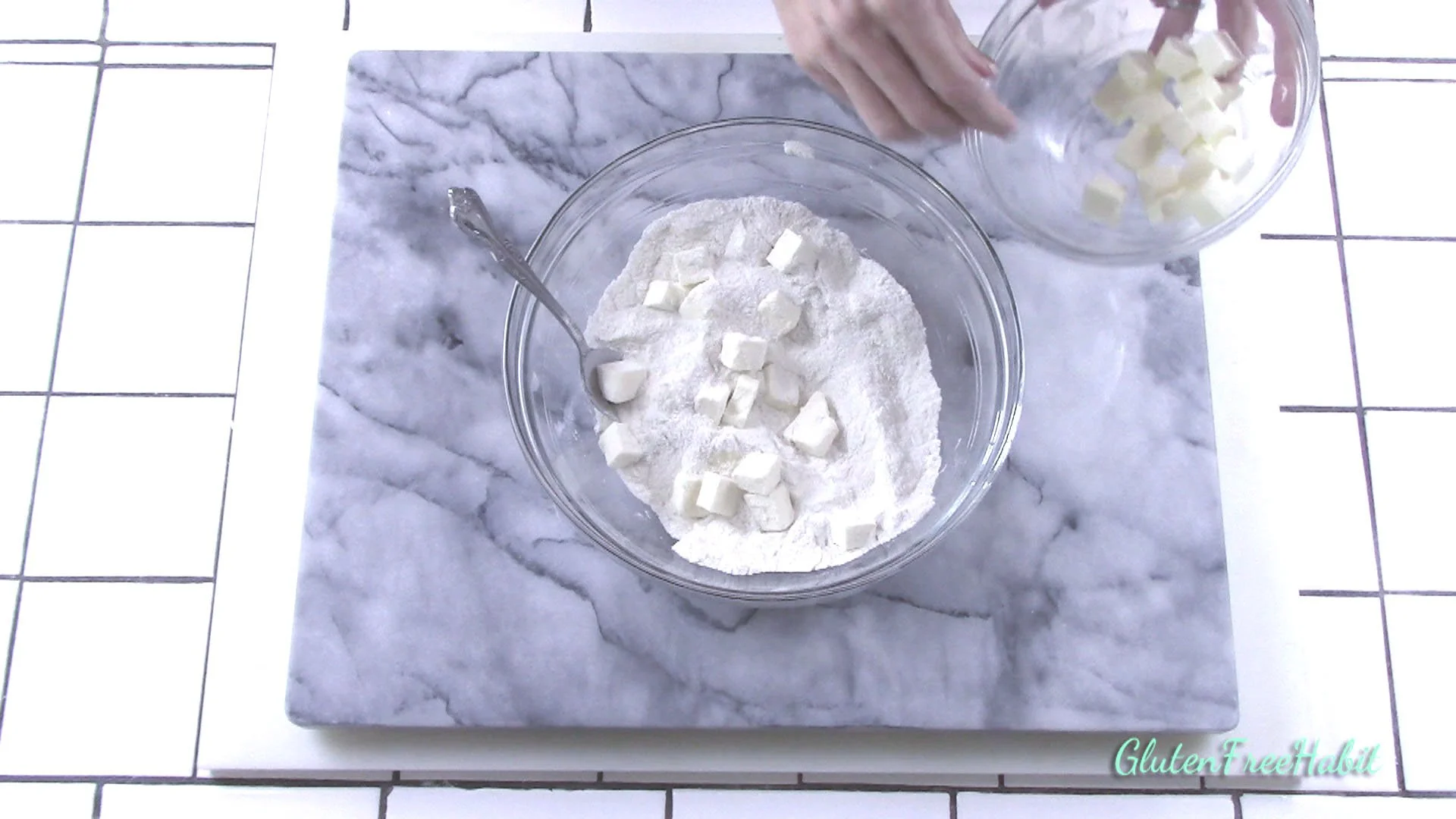 Cut butter into small cubes (about ½” – ¾”) and put in freezer.