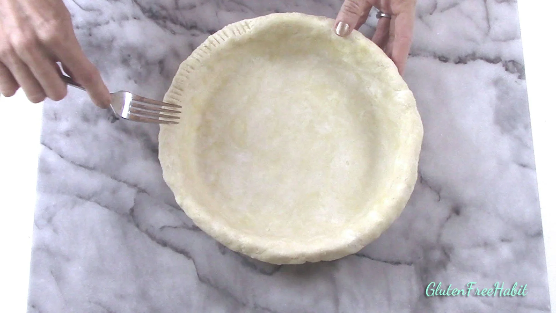 Create a design around the top edge of pie crust: A fork can be used to gently press lines into the dough.