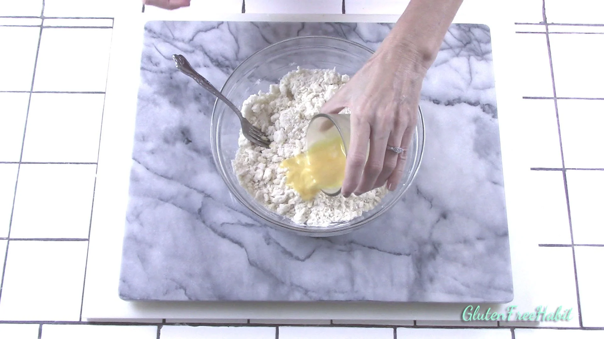 Add egg to flour mixture. Stir gently until fully incorporated.