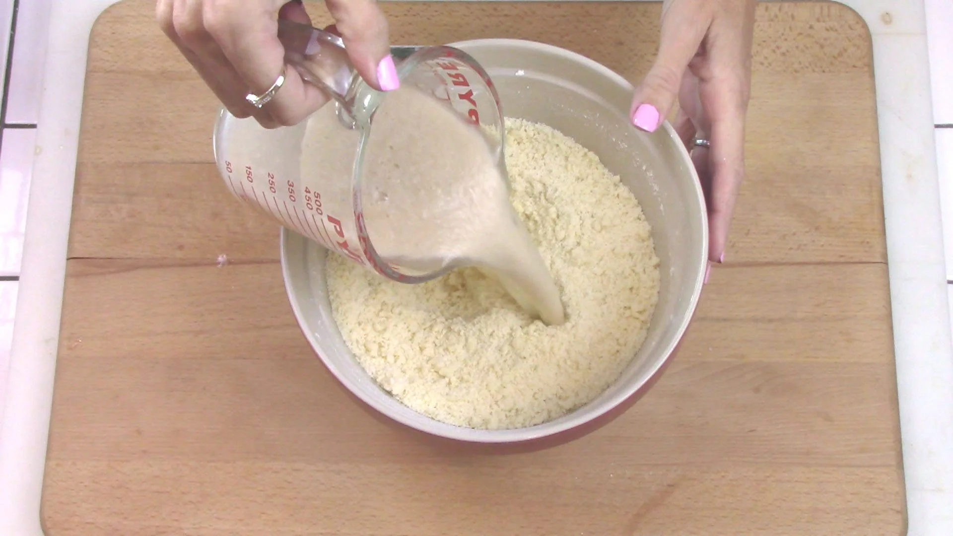 Add this wet ingredients mix into your dry ingredients. Mix on low until everything is combined (it will be crumbly).