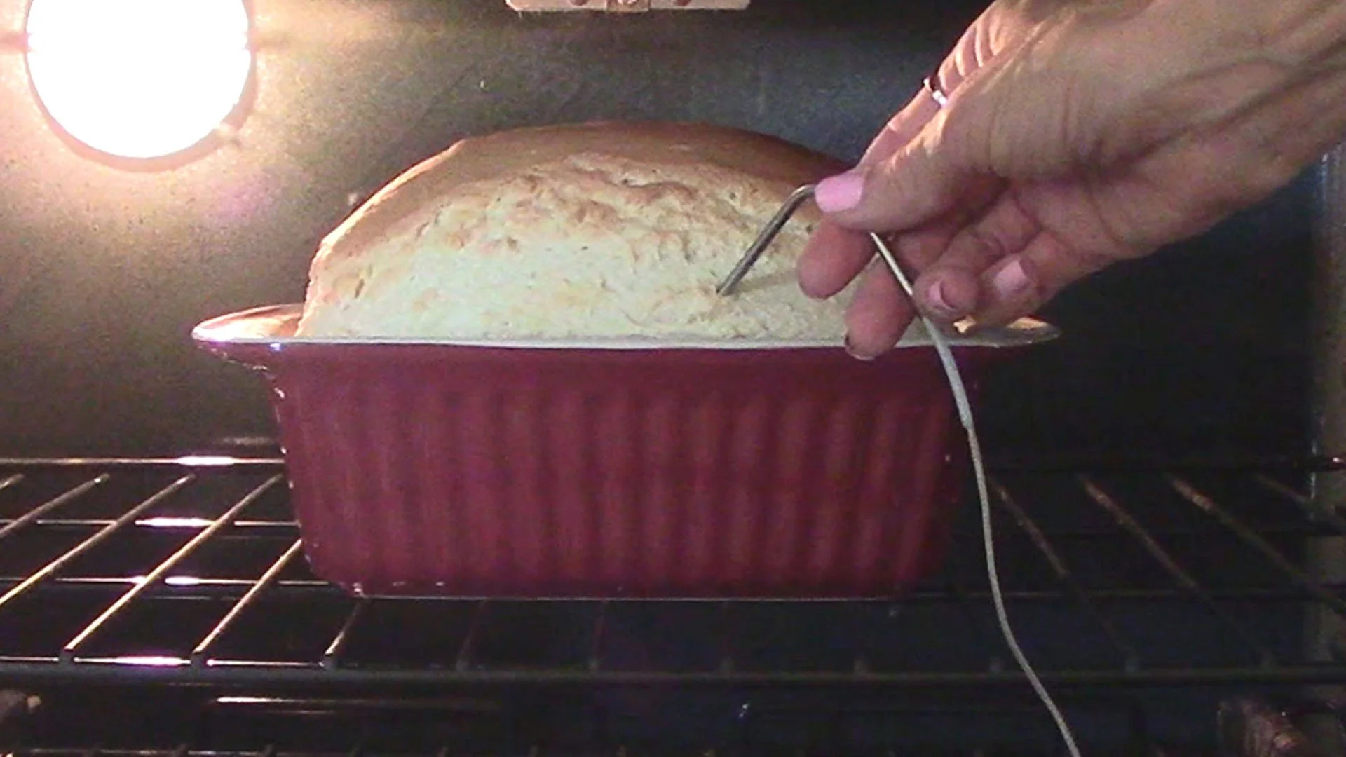 When dough is done rising, bake on center rack until internal temperature reaches 207°-208°. A thermometer is by far the best way to get success with bread, as every oven varies. However, if you don’t have one, as a guideline bake for 40 minutes. (Sometimes I cover mine loosely with tinfoil during the last 10-15 minutes of baking to prevent over-browning.)
