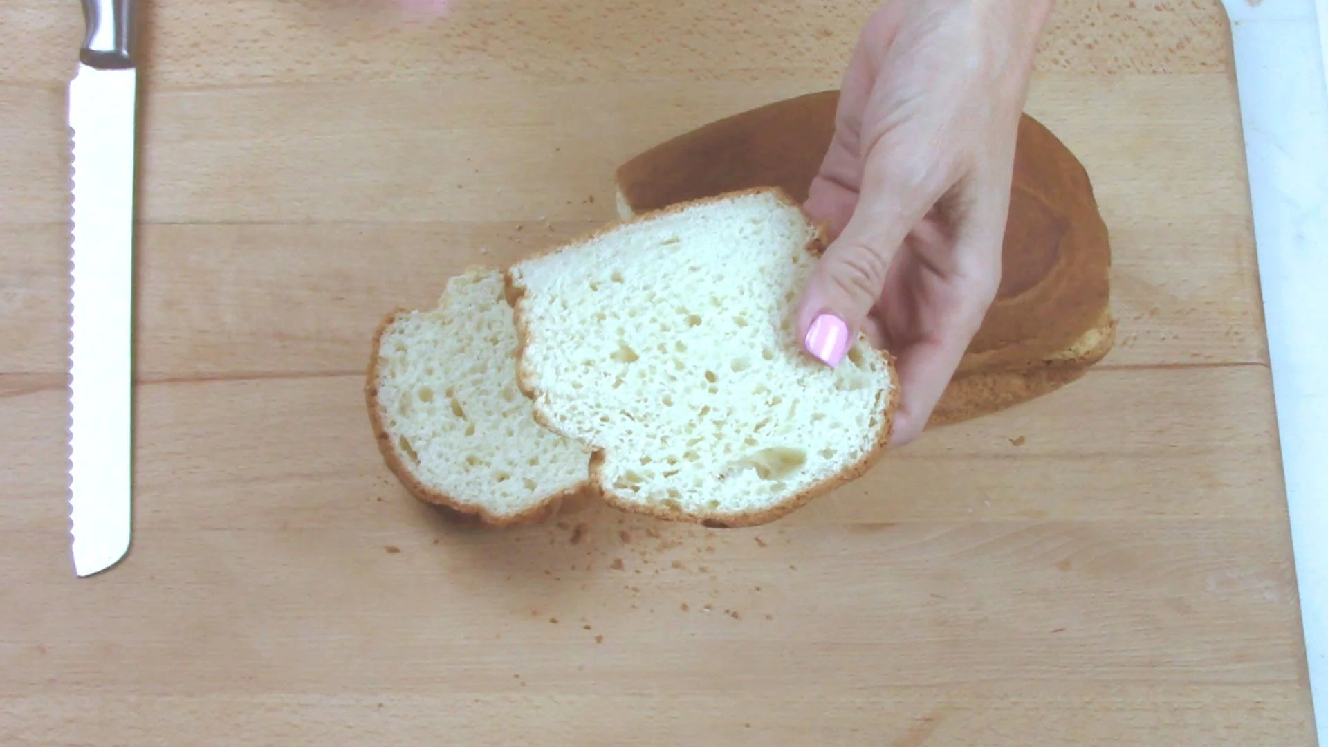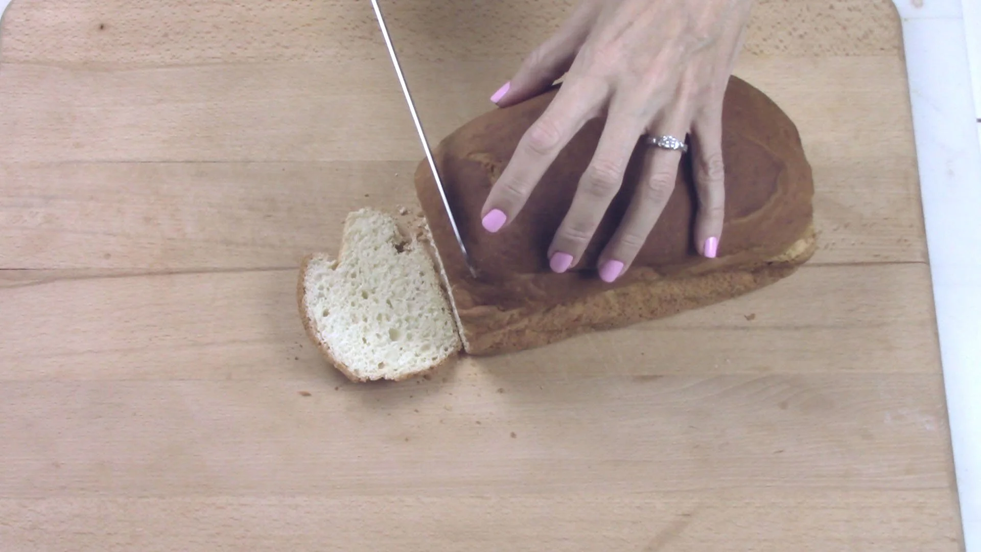 When slicing bread, be sure to use a serrated knife to gently saw back and forth…don’t press or you will squish your beautiful loaf of bread.