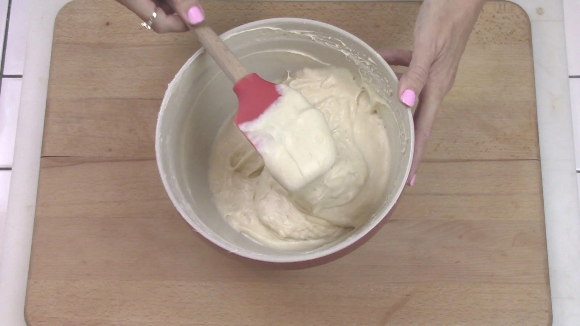 Beat on low until combined (about 30 seconds), then mix on medium/high for 7 minutes. Please don’t skip the mixing time…it’s important to the results!
