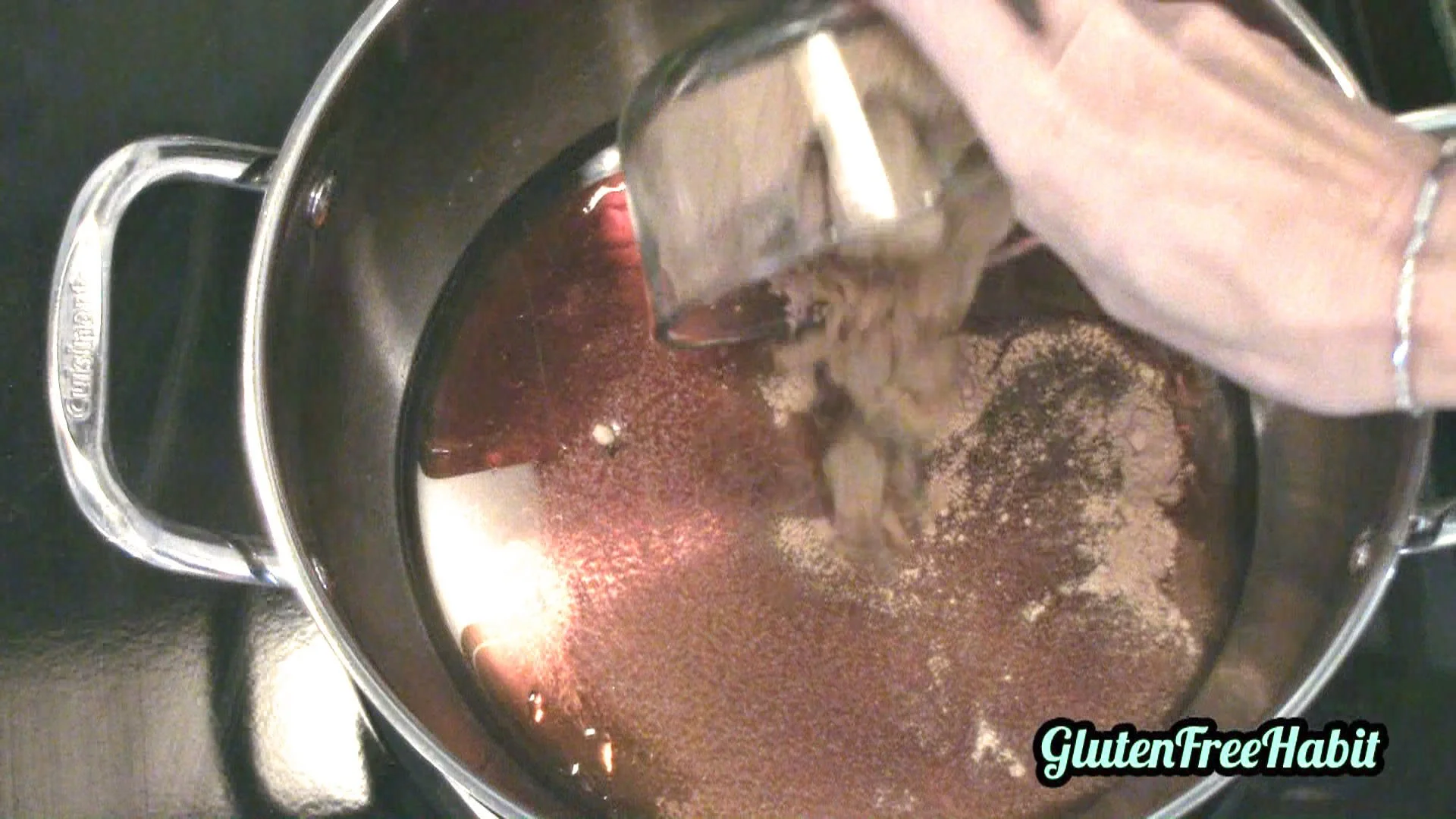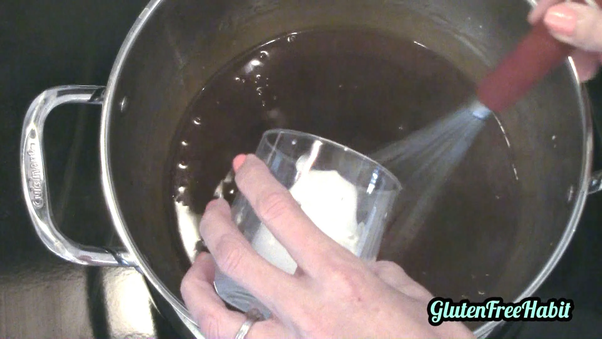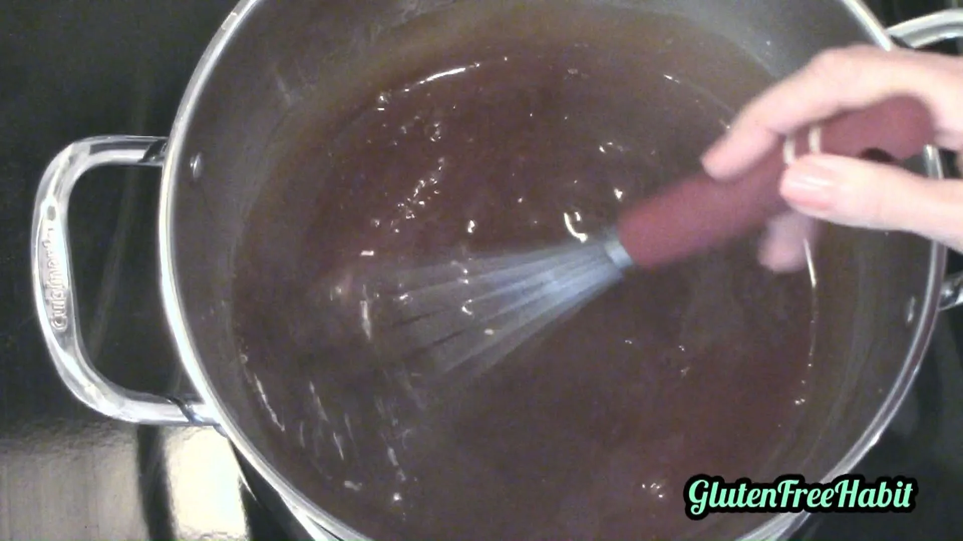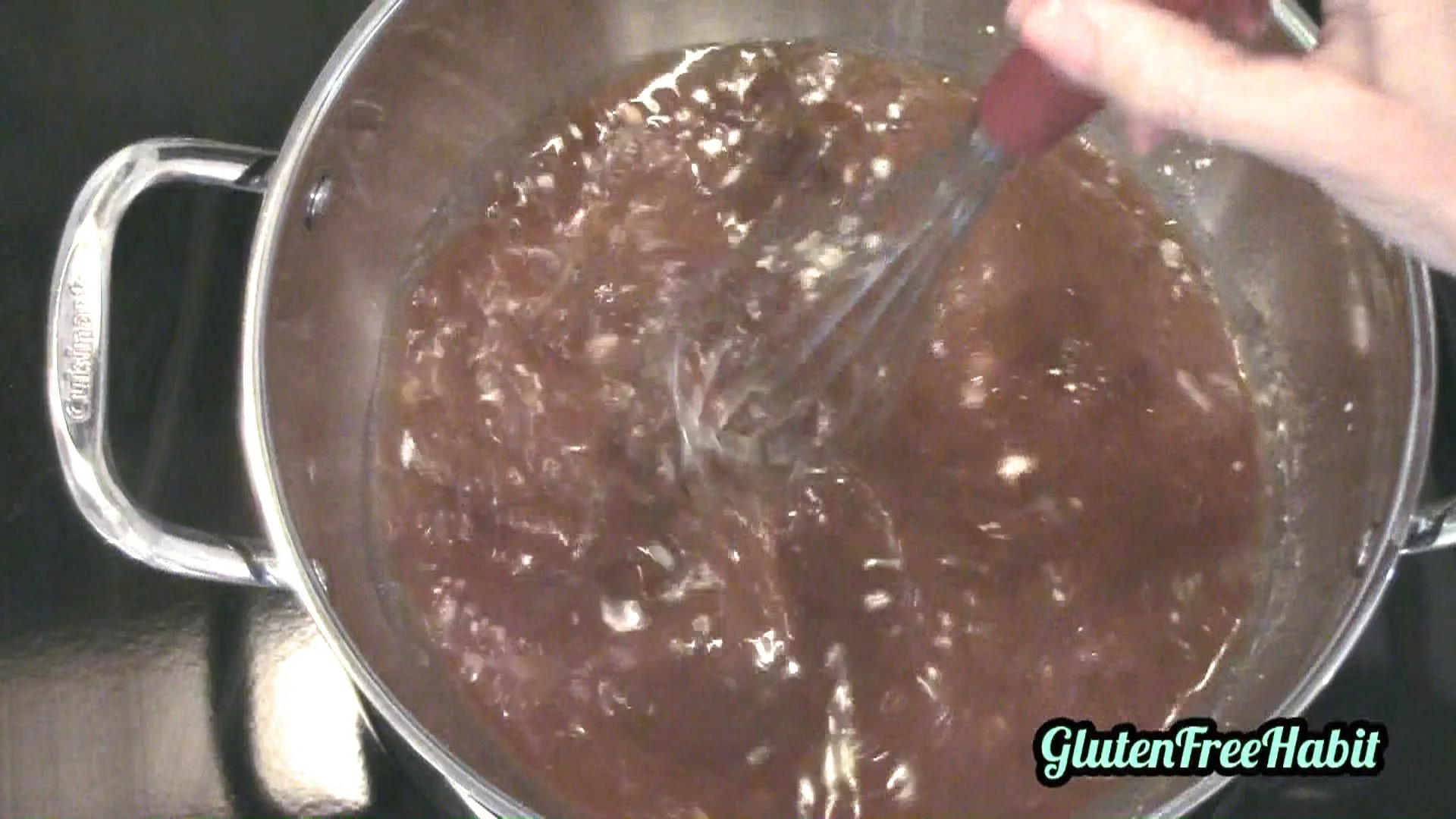 Heat and whisk until bubbly, then reduce to simmer. Continue to heat for a few minutes, and check consistency.