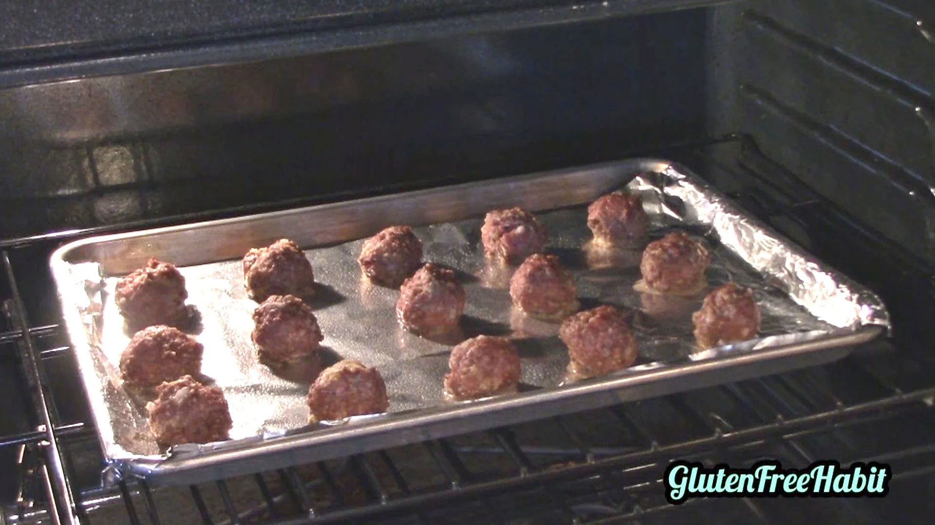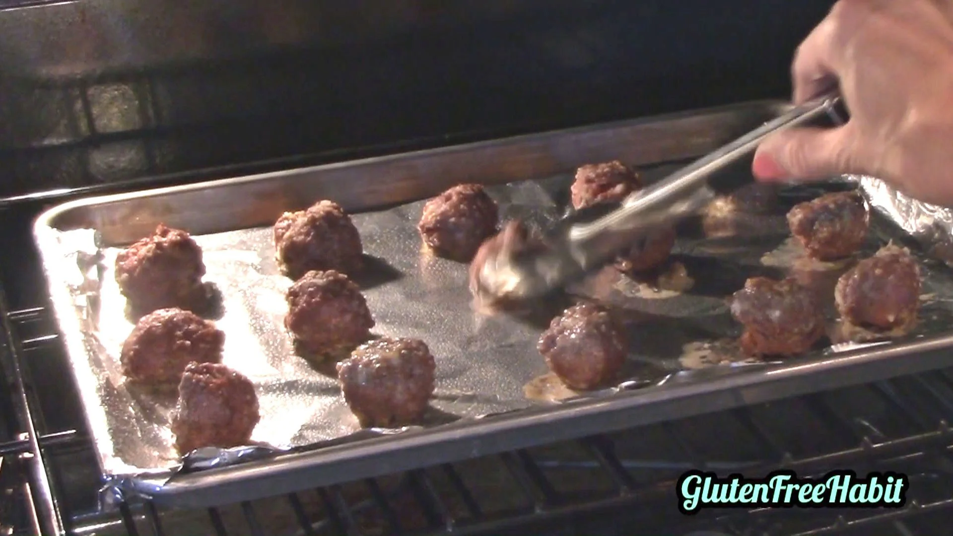 Turn meatballs ½ way through cooking. Bake until fully cooked. Check largest meatball for doneness.