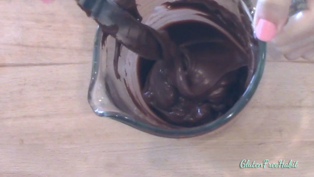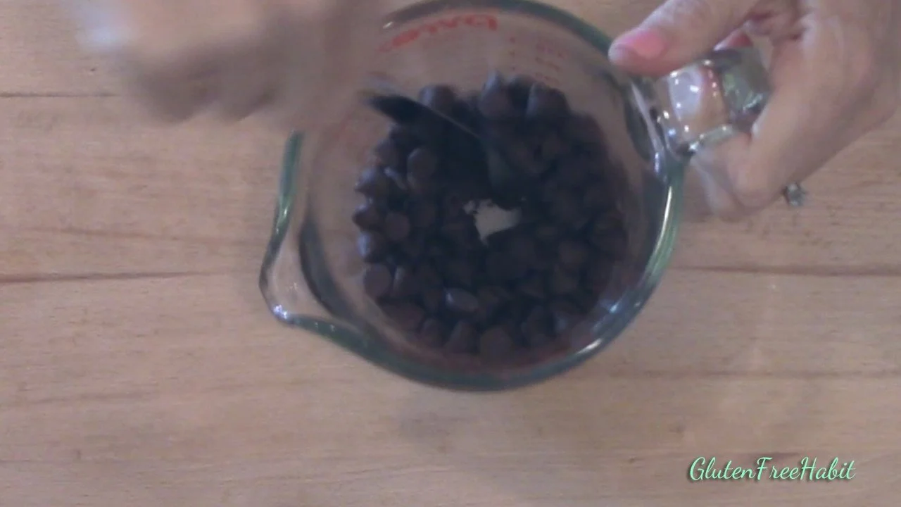 Continue melting chocolate in 30-second increments until the chocolate starts to melt. Then switch to 15-second increments. The chocolate in the picture above is starting to melt. Switch to 15-second increments now.