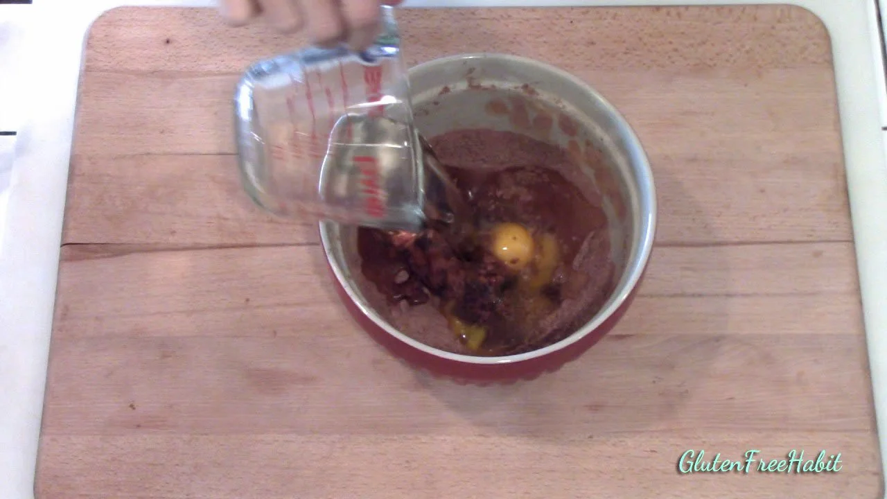 Now add in the egg, water, oil, and vanilla