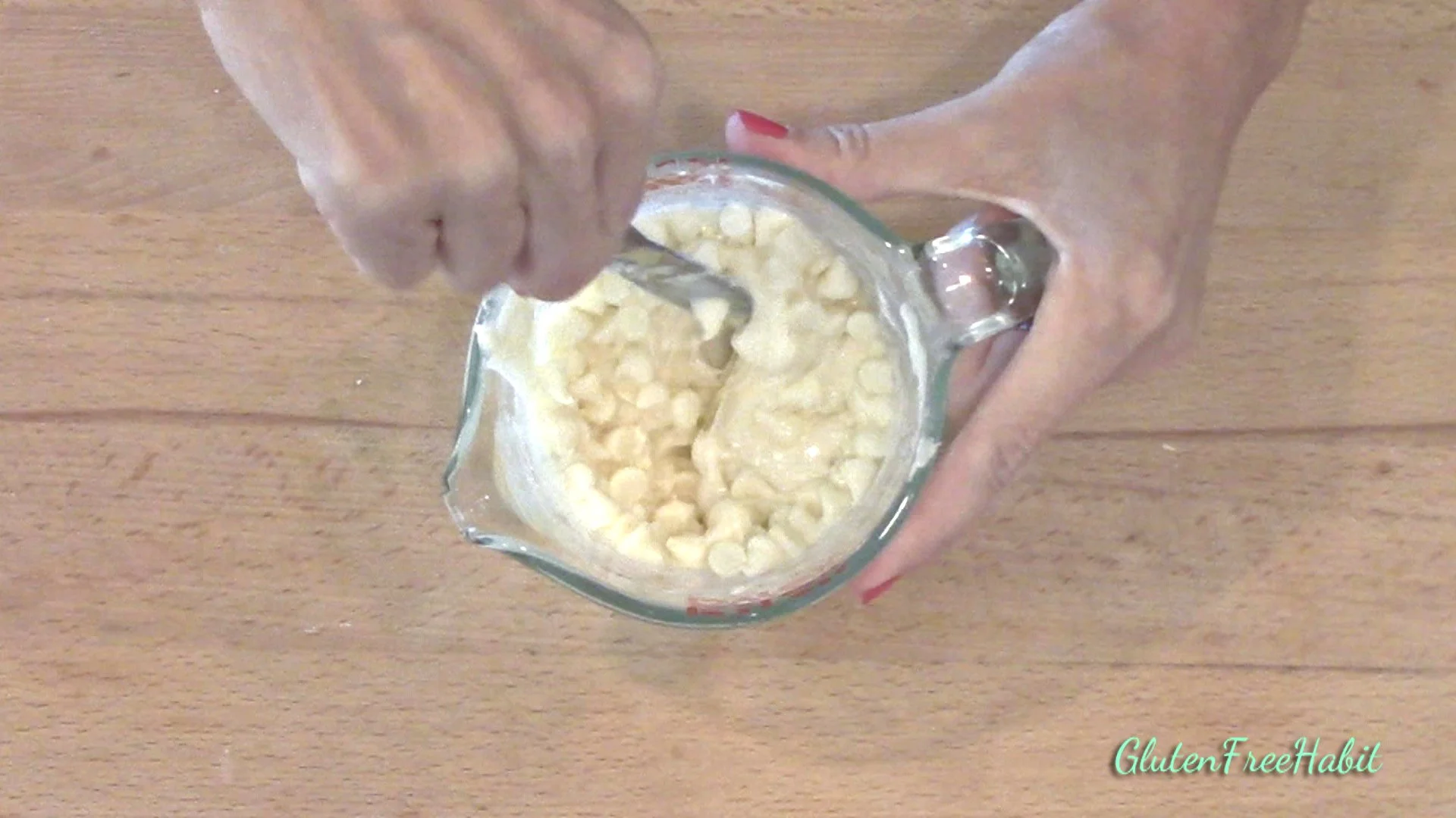Observe how much of the chocolate is melted. Remember, you want to have remaining chunks of chips that have NOT MELTED yet. Resist the temptation to melt them all the way.